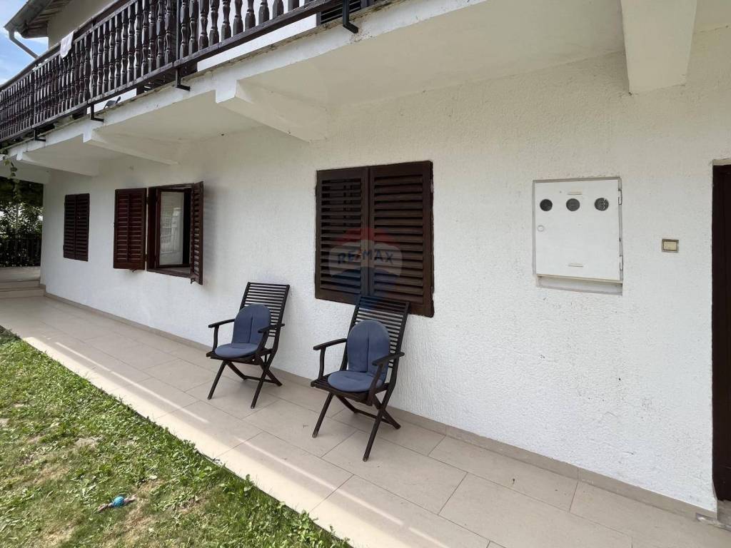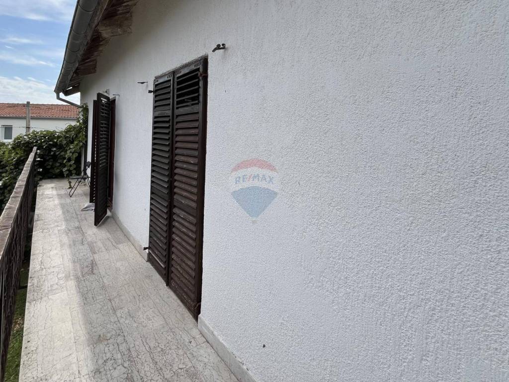 ReMax centar nekretnina iz svoje ponude izdvaja dvojnu kuću sa vlastitom okućnicom. Kuća se nalazi u mirnom susjedstvu, proteže se na dvije etaže uz potkrovlje koje je potrebno urediti. Kuća ukupne površine 250 m2 sastoji se od ulaznog hodnika i dvije kuhinje sa dnevnim boravcima u prizemlju, na prvom katu nalazimo 5 spavaćih soba i tri kupaonice te malu ostavu i balkon koji se proteže cijelom duljinom kuće. Potkrovlje je neuređeno. Ispred kuće se prostire ograđeno dvorište veličine 103 m2. U blizini se nalaze i uređene plaže te sva potrebna infrastruktura za svakodnevni život.