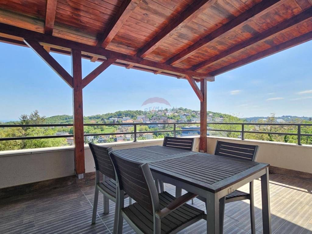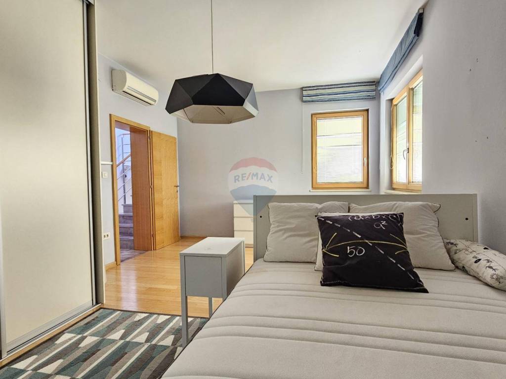 Par stepenica vode u veliku spavaću sobu s vlastitom kupaonicom i garderobom. Soba ima izlaz na manju terasu.