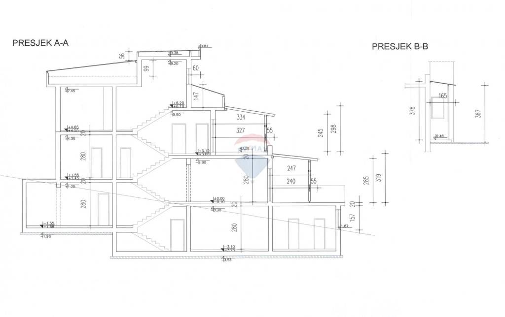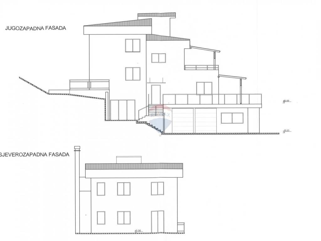 Nalazi se na parceli ukupne veličine 857 m2 i sastoji se od četiri etaže: suteren, prizemlje, kat i krovna kućica.