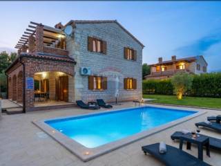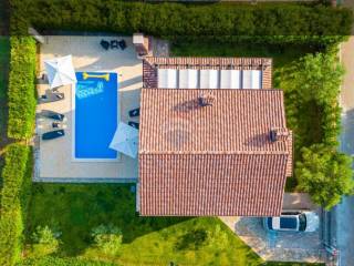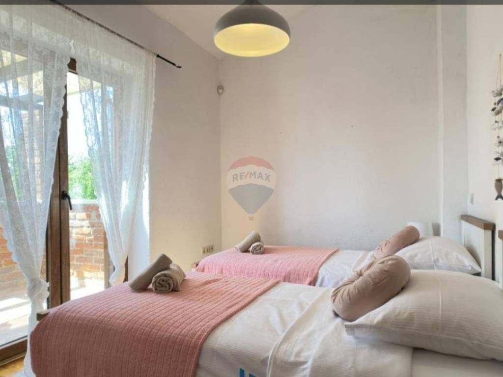 RE/MAX Centar nekretnina iz svoje ponude izdvaja kuću za odmor sa bazenom, na odličnoj lokaciji u blizini Juršića. Kuća je smještena na parceli od 605m2, te je bruto površine 200m2, raspoređene na prizemlje i prvi kat. U prizemlju se nalazi dnevni boravak s izlazom na terasu i blagovaonica povezana sa kuhinjom. Tu je i jedna spavaća soba koja ima direktan izlaz na terasu i dvorište, te jedna kupaonica. Na prvom katu nalaze se tri spavaće sobe, prostrani balkon (dijele ga dvije spavaće sobe), te jedna kupaonica. Ispred kuće je prostrana terasa sa prostorom za druženje i roštiljem. Okućnica je skladna i lijepo održavana. Dominantan položaj u dvorištu zauzima prostrani bazen od 32 m2 s uređenom plažom i sunčalištem.