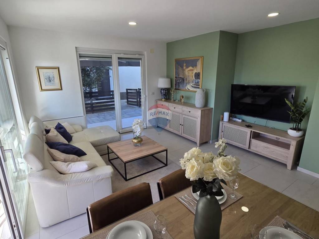 Sveukupna površina stana sa sporednim dijelovima iznosi 173 m², od kojih je 78 m² stambene površine. Ova visoko kvalitetna nekretnina sastoji se od prostranog dnevnog boravka s kuhinjom i blagovaonicom, tri sobe i dvije kupaonice, pružajući funkcionalan i ugodan raspored za obiteljski život ili turističku namjenu.