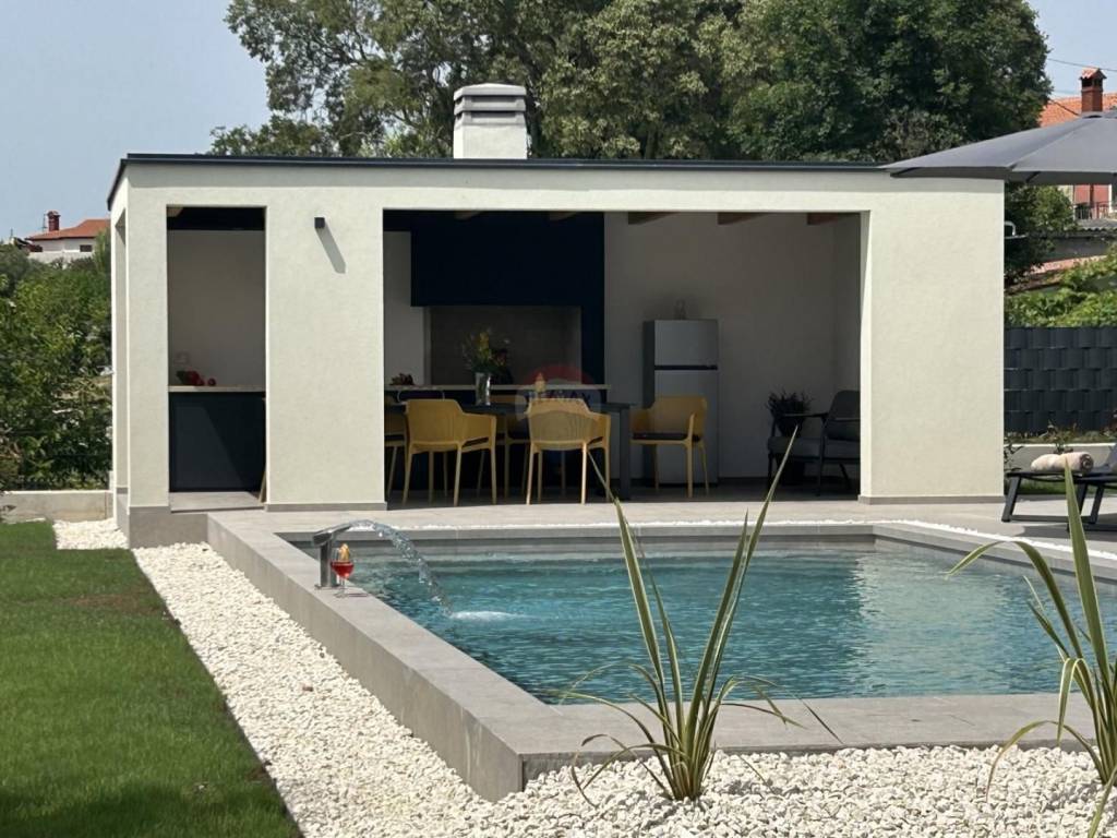 U okolici Svetvinčenta prodajemo modernu kuću s bazenom. Kuća je pozicionirana prema jugozapadu, na rubu naselja, zadnja urbanizirana parcela.
