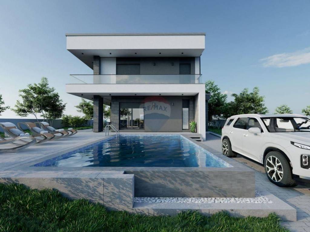 U prizemlju je dnevni boravak s kuhinjom, izlaz na natkrivenu terasu i bazen 32 m2, kupaonica i ostava a na katu 3 spavaće sobe svaka sa svojom kupaonicom te izlazom na balkon. Kuća će imati puno prirodnog svjetla s otvorenim prostorom i staklenim stijenama. Kuća će biti opremljena s podnim grijanjem i dizalicom topline.