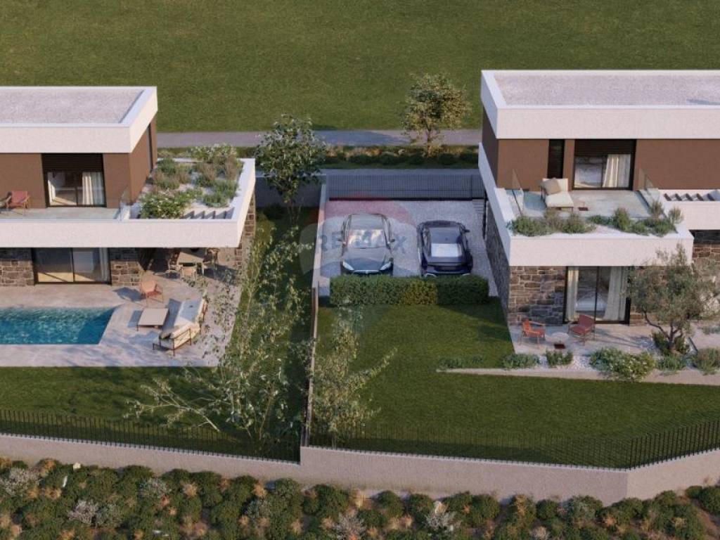 Moderna kuća s vlastitim bazenom, trenutno u fazi izgradnje s planiranim završetkom na ljeto 2025. Kuća će se sastojati od predsoblja, open space dnevnog boravka s kuhinjom i blagovaonicom, tri spavaće sobe sa vlastitim kupaonicama i izlaskom na balkon od kojih jedna ima i dodatnu garderobu, praonice i toaleta. Parcela je površine 700m2 a bazen je površine 24 m2.