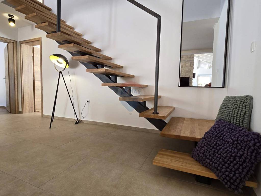 dok se na gornjem katu nalaze dvije spavaće sobe s panoramskim pogledom na more.