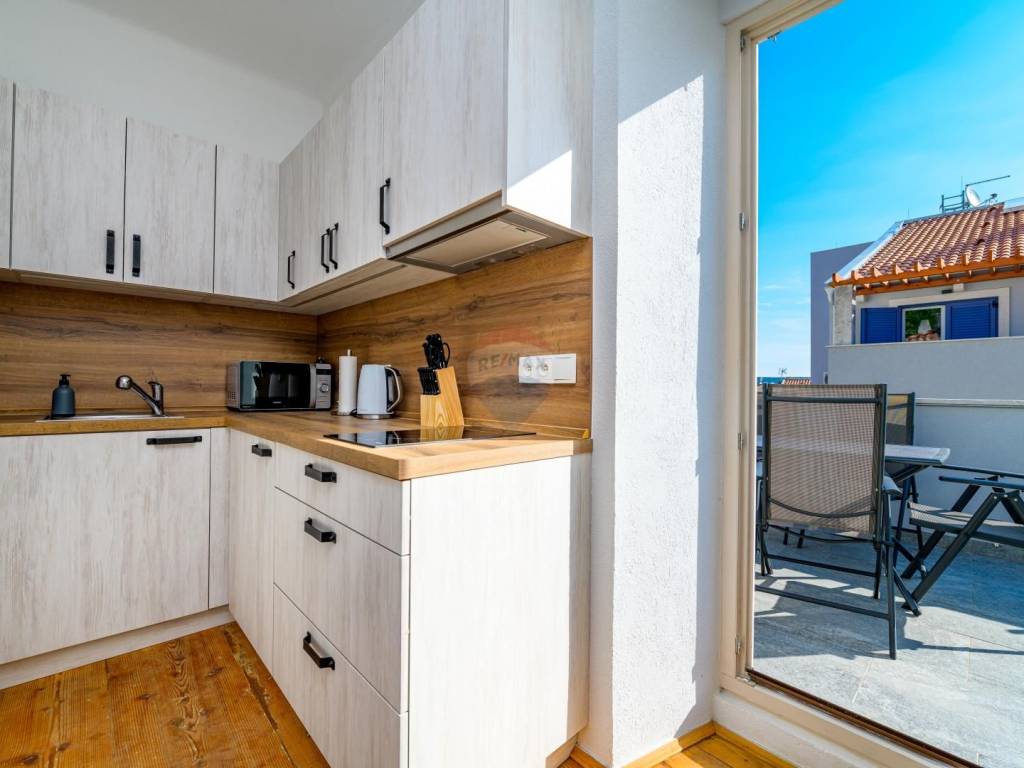 Treći apartman nudi spavaću sobu s bračnim krevetom, dnevni boravak s pomoćnim ležajem, čajnu kuhinju, modernu kupaonicu te prostranu terasu. Iz apartmana vode stepenice prema potkrovlju koje služi kao dodatni prostor za još 4 osobe.