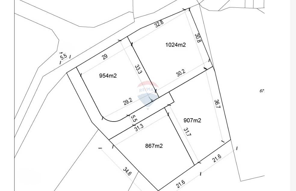 Površine od 867 m2 do 1.024 m2