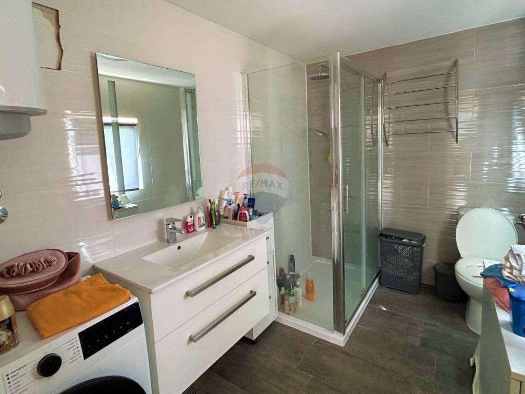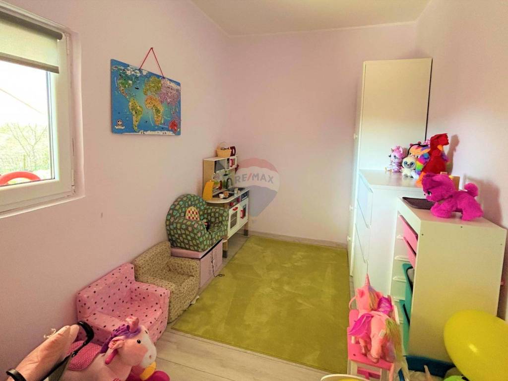 Stan na gornjoj etaži sastoji se od tri spavaće sobe, do koje jedna ima zasebno tuš kupatilo, Hodnika, kuhinje, ostave, dnevnog boravka i kupaone .