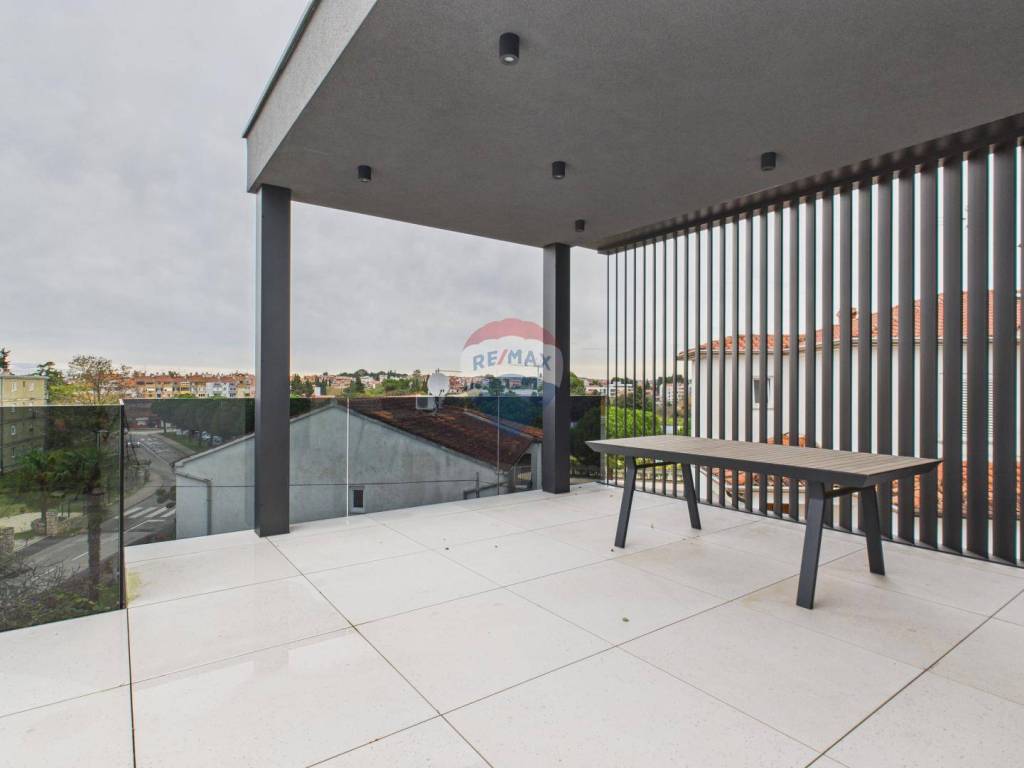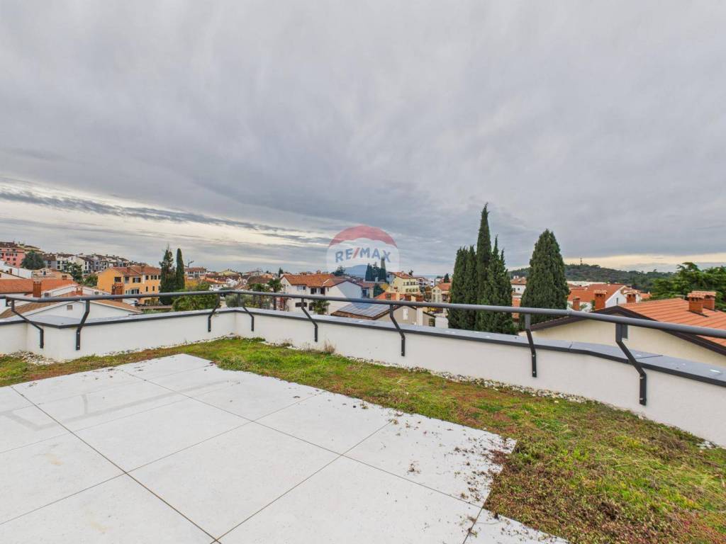 Na krovu se nalazi velika krovna terasa s koje se pruža otvoren pogled na more i Rovinj, dodatno povećavajući vrijednost i atraktivnost nekretnine.