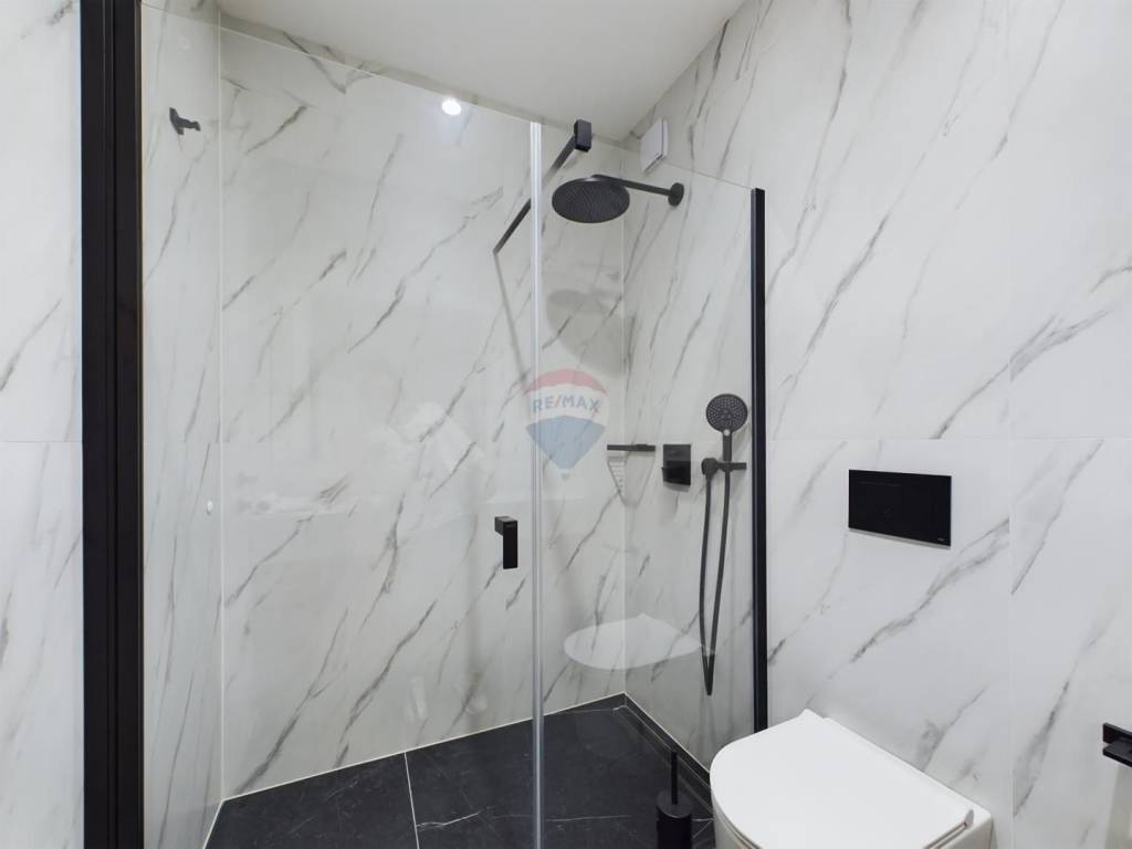 Nalazi se u prizemlju moderne zgrade sa 7 stanova a sastoji se od dvije spavaće sobe, tri kupaonice, hodnika, prostranog dnevnog boravka sa kuhinjom i blagovaonom, wellnes prostora sa saunom korisne površine 74 m2, velike terase sa ozelenjenom okućnicom od 100 m2, dva parkirna mjesta u podzemnoj garaži i spremišta koji ukupno čine korisnu površinu od 195 m2.