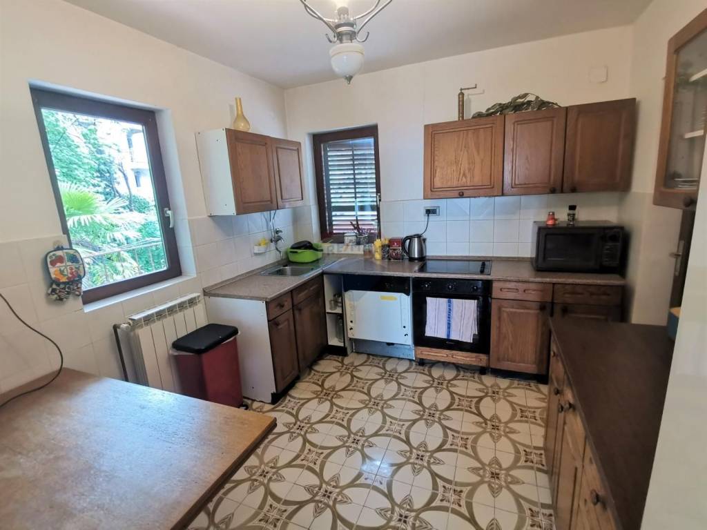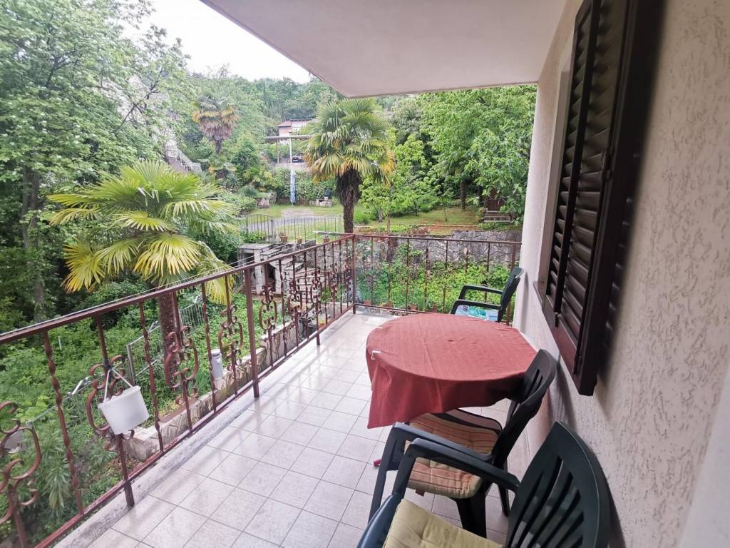 LOVRAN - ovaj prostrani, trosobni stan s prekrasnim pogledom, parkingom i okućnicom, smješten je na prvom katu uredne kuće,