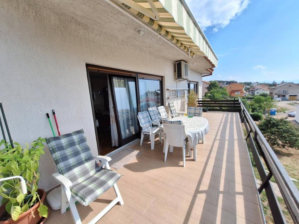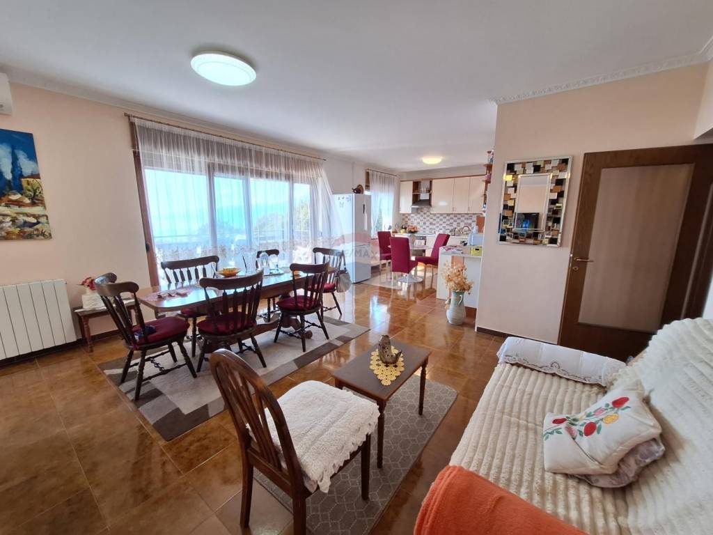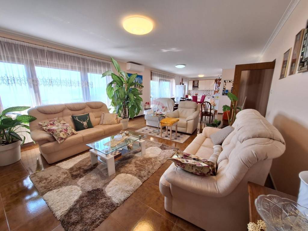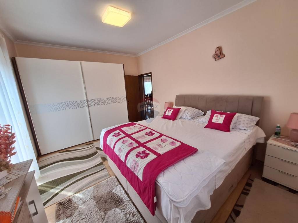 Stan u suterenu je dvosobni od 70 m2, stan u prizemlju ima 2 sobe te veliki dnevni dio s natkrivenim balkonom i ulaznom terasom, stan na katu je trosobni s dnevnim koji ukupno s balkonima ima 176 m2, a ima i jako lijep pogled na more.