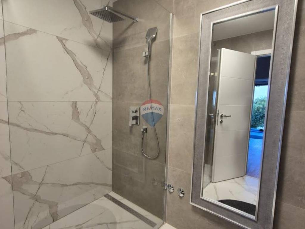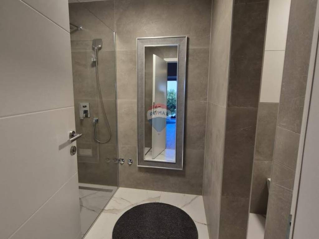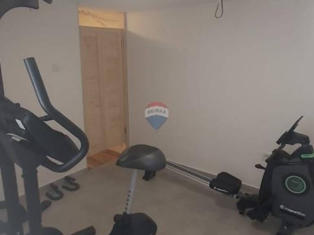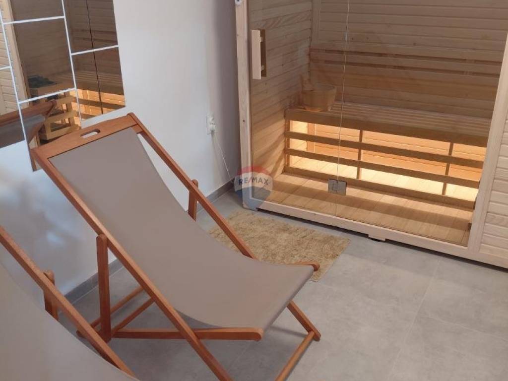 Ova moderna kuća odlikuje se prostranim dnevnim boravkom povezanim s kuhinjom i blagovaonicom s izlazom na terasu s koje se prostire prekrasan pogled, dvije udobne spavaće sobe te elegantnom kupaonicom na prvom katu. U prizemlju se nalazi kupaonica, prostorija za pranje rublja te sauna i teretana. Ispred kuće nalazi se uređeno dvorište s dva parkirna mjesta.
