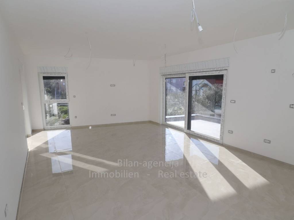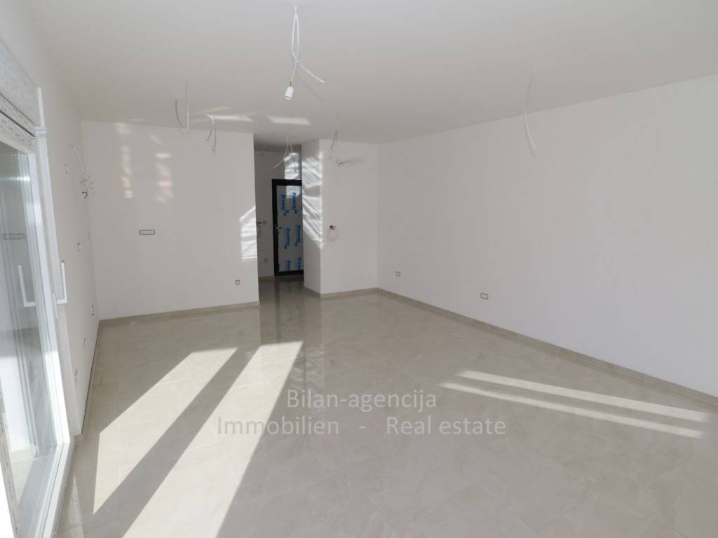 Stan je građen kvalitetno, opremljen je po najnovijim standardima; sa podnim grijanjem, elektro roletama i zaštitom od insekata, kvalitetnom keramikom i kupaonskom opremom. U spavaćim sobama i kuhinji-blagovaoni-dnevnom boravku su instalirani kvalitetni inverter klima uređaji. Prostorije su svjetle i prozračne za ugodan cjelogodišnji boravak. Posebna pogodnost su dva lijepa balkona u površini od 25 m2. Površina samog stana iznosi 74,11 m2. Površina parkirnog mjesta iznosi 15,40 m2.