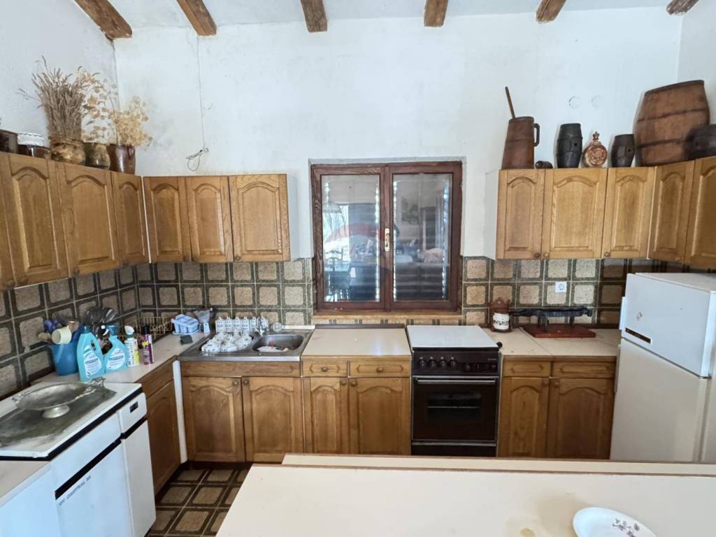 RE/MAX Centar nekretnina izdvaja uz svoje ponude simpatičnu kuću u malom mjestu na otoku Krku. Okružena sa svega nekoliko kuća te velikom okućnicom od 2800m2 budućem vlasniku osigurava mir. Kuća je koncipirana kao dvoetažni stan gdje se u prizemlju nalazi prostrani dnevni boravak, kuhinja i blagavaona visokih stropova na kojima su grede te mu daju posebnu čar. Iz dnevnog boravka koji je južno orijentiran se izlazi na veliku okućnicu gdje se nalazi roštilj te maslenik s 10-ak maslina. U prizemlju je također jedna spavaća soba, predsoblje te kupaona. Na katu su dvije spavaće sobe te još jedan kupaona. Grijanje je centralno na drva, ispred kuće ukopana je šterna od 25 kubika te spremište. Nekretnina s puno potencijala s predivnom krošnjama obraslom okućnicom zahtjeva određenu adaptaciju. Papiri uredni, mogućnost kupnje na kredit.