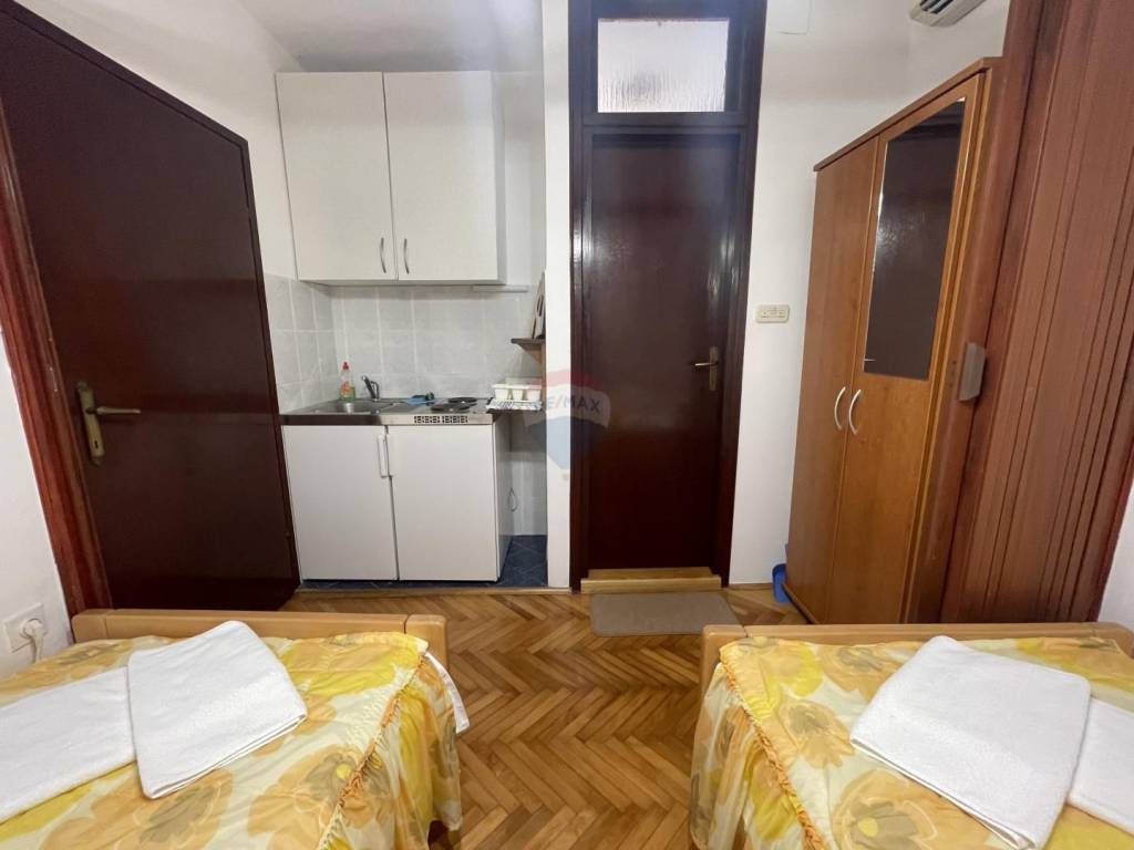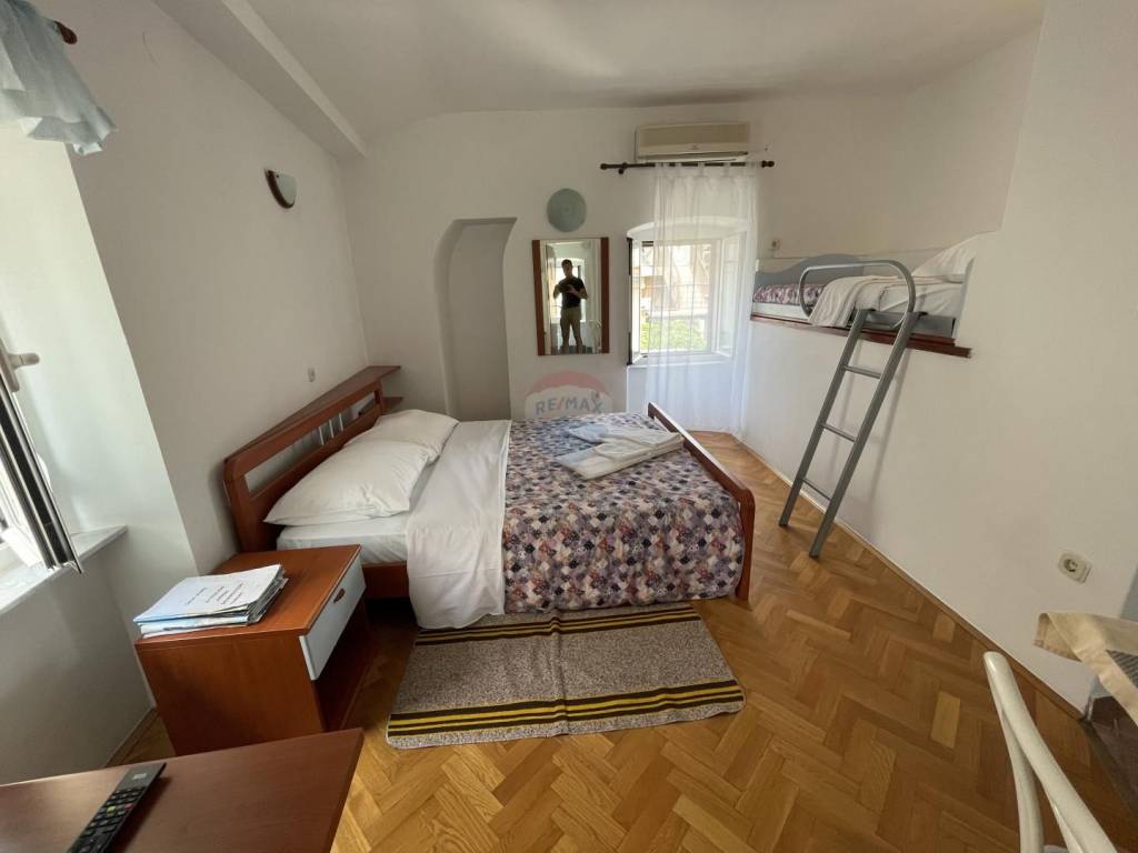 REMAX centar nekretnina posreduje u prodaji ove nekretnine smještene u samom centru starogradske jezgre drevnog grada Krka. U prodaji je ukupno sedam studio-apartmana,smještenih u tri zgrade. Šest ih se koristi za turistički najam,dok sedmi apartman koriste vlasnici.Površina apartmana je od 25-30 m2.Na okućnici se nalazi dvorište i terasa koji se koriste za potrebe turista.Apartmani su opremljeni klima uređajima,TV-om i internetom.Iako je nekretnina smještena u samom centru starog grada,ima svoju privatnost i mir jer je okružena zidom,te nema direktan doticaj s ulicom.Nalazi se na vrlo atraktivnoj lokaciji,samo 5o m od mora i tri minute hoda do prve plaže.Do svih važnijih sadržaja može se doći za 5-10 minuta hoda,tako da je automobil potreban samo u izuzetnim situacijama. Za više informacija s povjerenjem se obratite na:+385916417011 ili d.grlj@remax-krk.hr