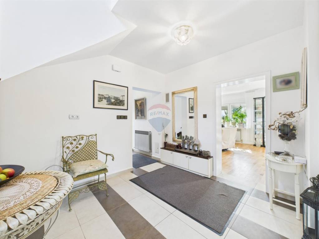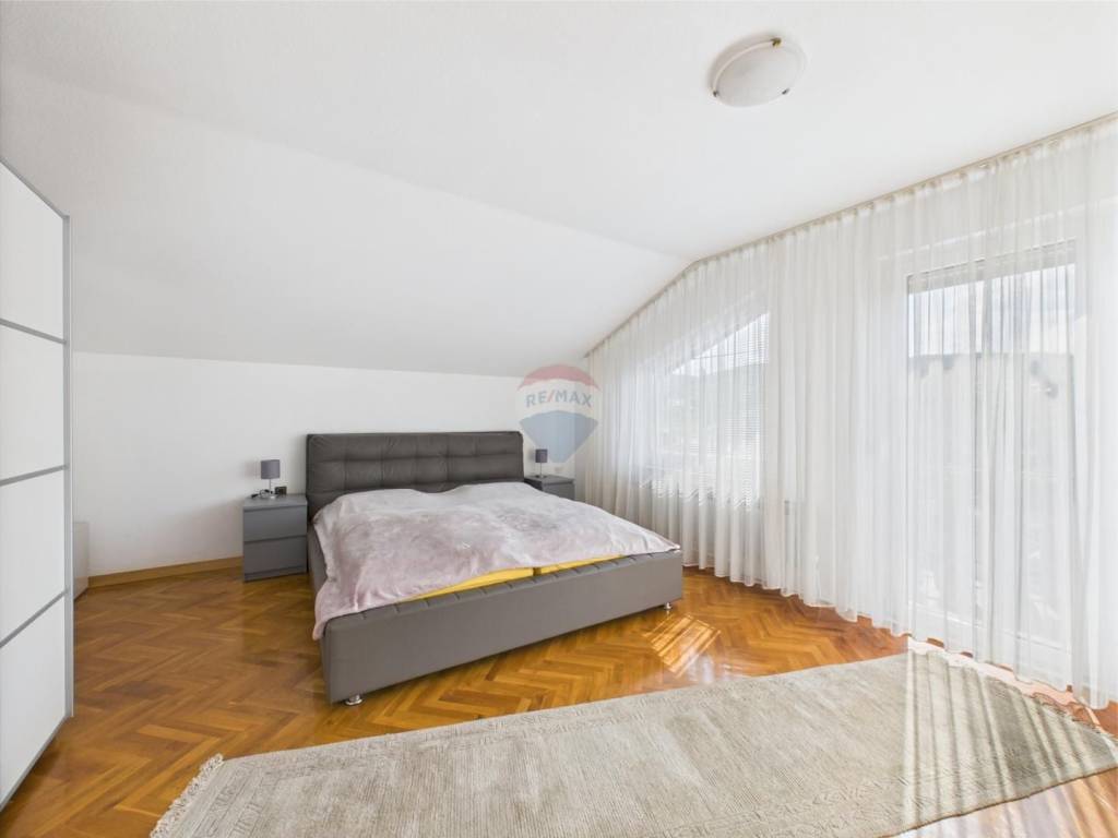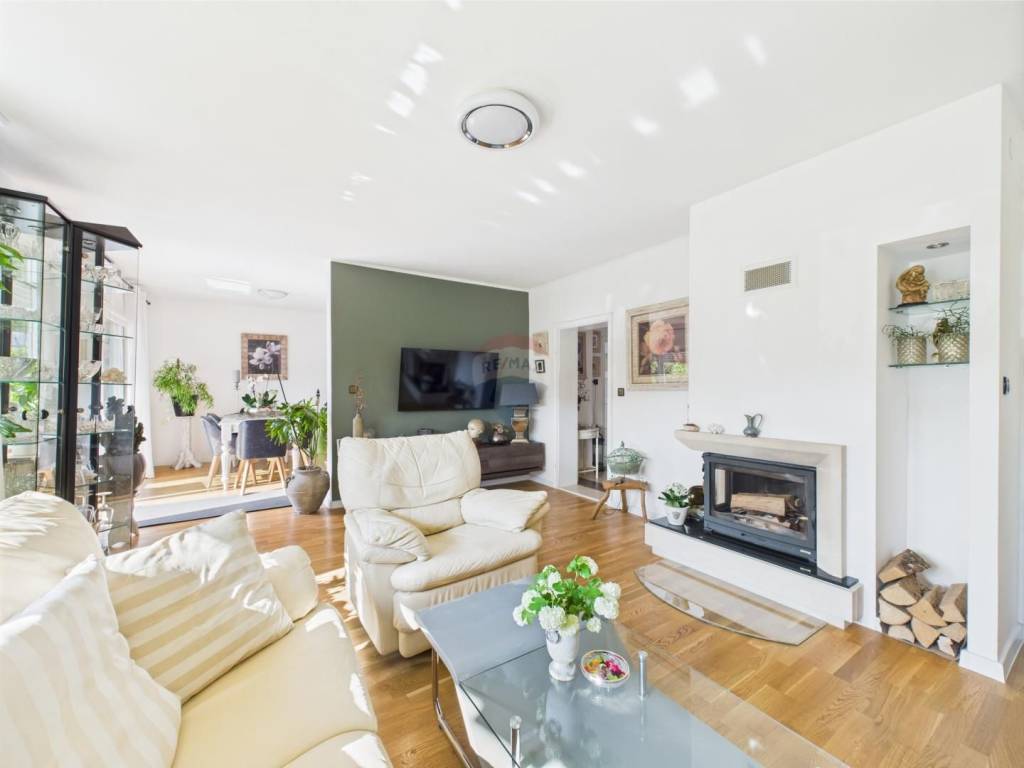 Nekretnina se prostire na dvije etaže. U prizemlju se nalazi ulazni hodnik sa stubištem, kotlovnica, kupaonica, kuhinja, prostrani dnevni boravak sa blagovaonom te izlazom na uređenu terasu s vrtom. Na prvom katu smještene su tri velike spavaće sobe od kojih dvije imaju izlaz na balkon, te dodatna kupaonica i odvojeni toalet. Kuća se grije putem centralnog grijanja na drva, a provedena je sva potrebna infrastruktura osim plina, koji se nalazi na ulici. Nekretnina je vrlo očuvana i redovito održavana. Na lijepo uređenoj okućnici površine 700 m2 također se nalazi i garaža sa dva parkirna mjesta.