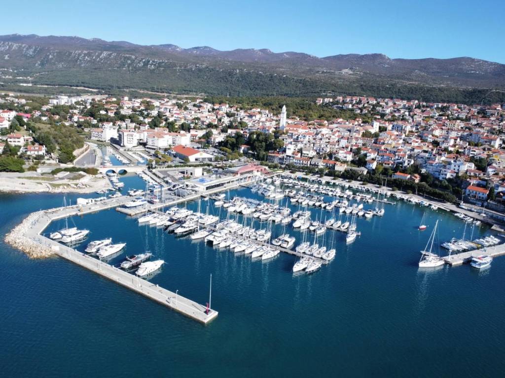 U dvorištu se nalazi otvoreni prostor s malo zelenila, a vanjskim stubištem dolazi se do velike terase s koje se pruža prekrasan pogled na marinu i more.