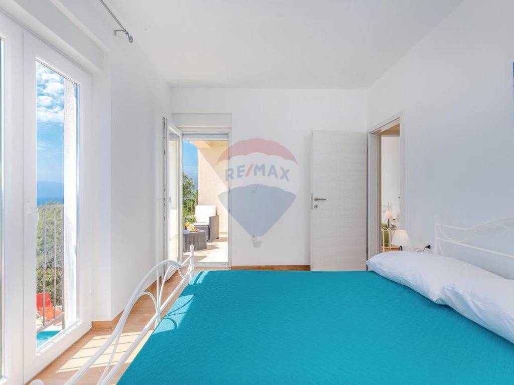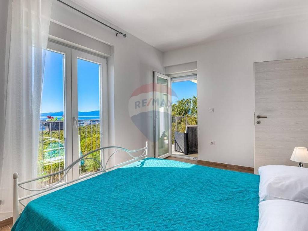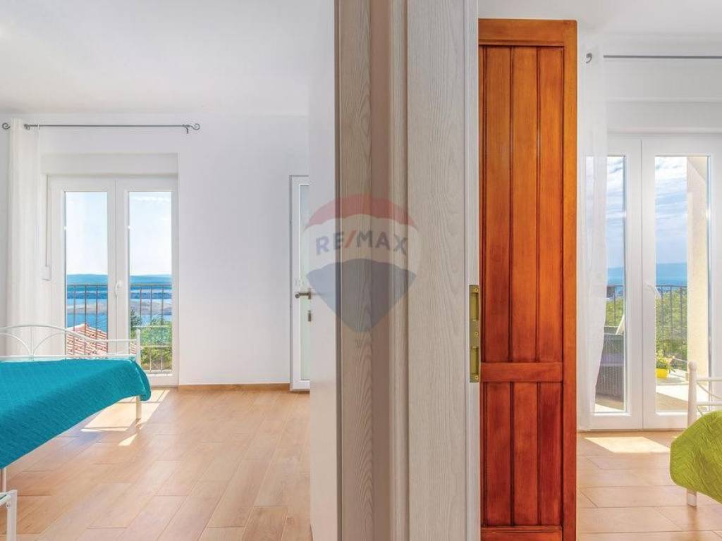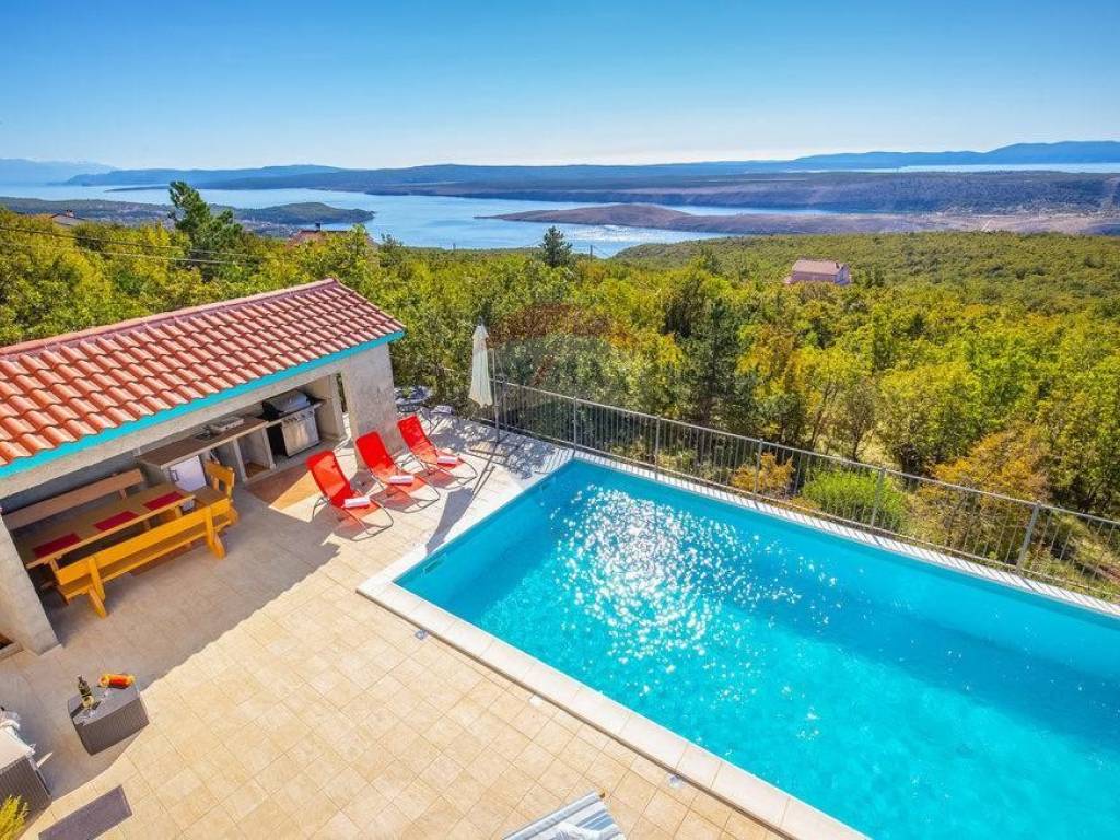 Kuća se nalazi na vrlo intimnoj lokaciji okruženoj zelenilom i mirom, sa predivnim otvorenim pogledom na more, na samo 5 minuta od otoka Krka i samo 15 minuta do strogog centra Rijeke.