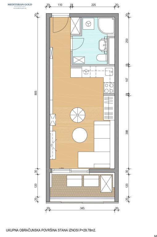 Split, Visoka, garsonjera od 29,78m2, prodaje se namještena i opremljena, položena na trećem katu novije stambene zgrade sa liftom, južne orijentacije. Mogućnost kupnje garažnog mjesta od 12,12m2 po cijeni od 35.000€. Pogled, odmah useljivo. www.mediteran-gold.com
