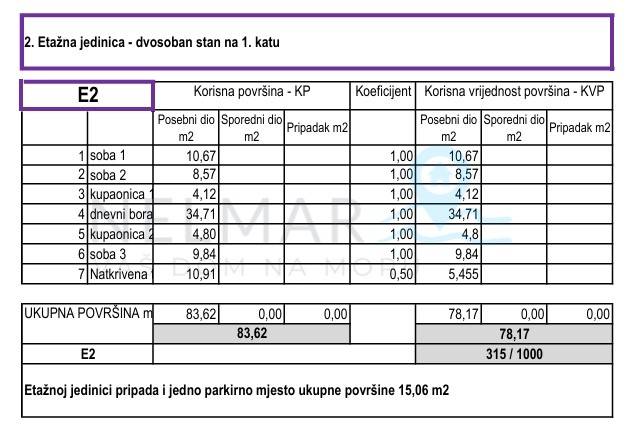 korisna vrijednost površina (KVP): 80,67 m²,