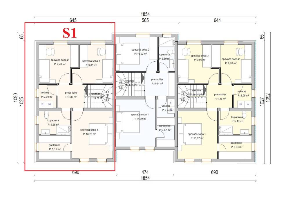 Vodice / Srima - *Novogradnja* Kuća u nizu netto površine 113m2, koja se sastoji od prizemlja kojeg čine : natkriveni ulaz, kupaonica, spremište, ostava, ulazni predprostor, kuhinja, dnavni boravak sa blagovaonom, natkrivena terasa, unutarnje stepenice za kat gdje su smještene 3 spavaće sobe, kupaonica, hodnik i vešeraj. kući pripada ograđeno dvorište površine 87 m2 i 2 parkirna mjesta.