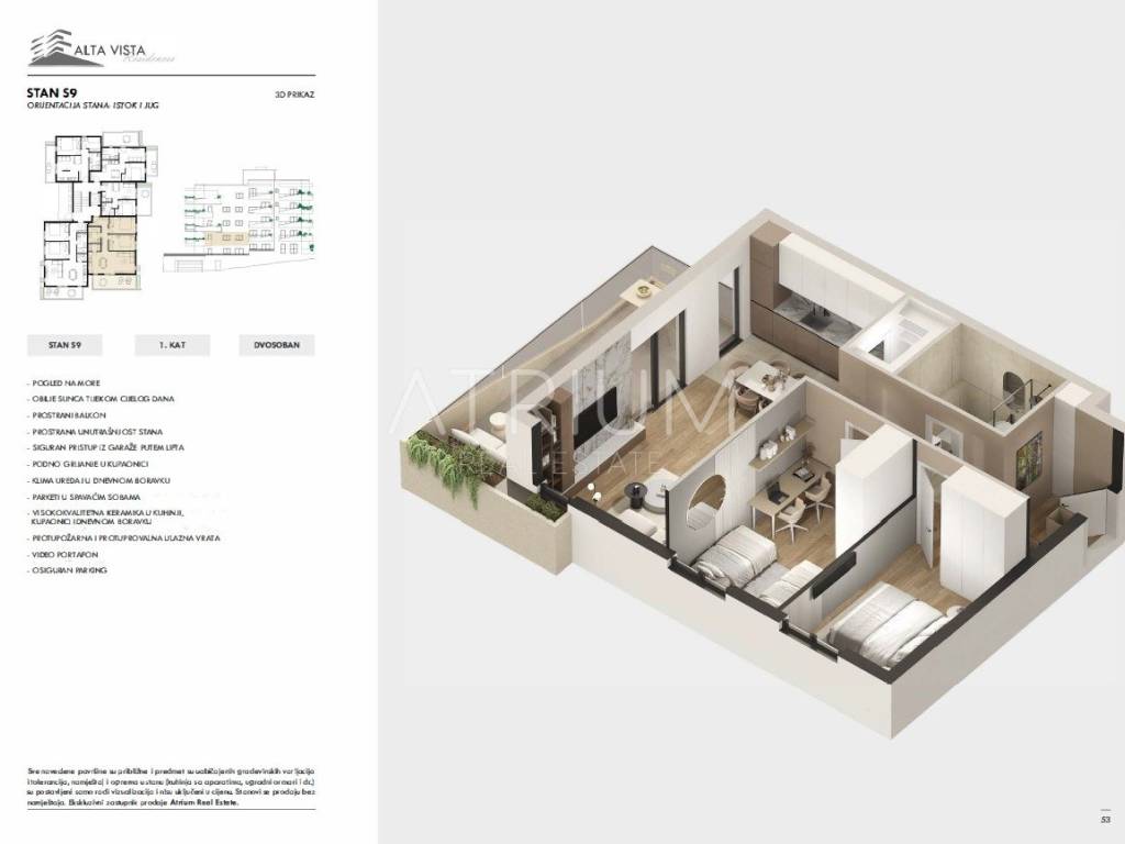 Mogućnost kupnje garažnog ili vanjskog parkirnog mjesta s ostavom u podrumu.