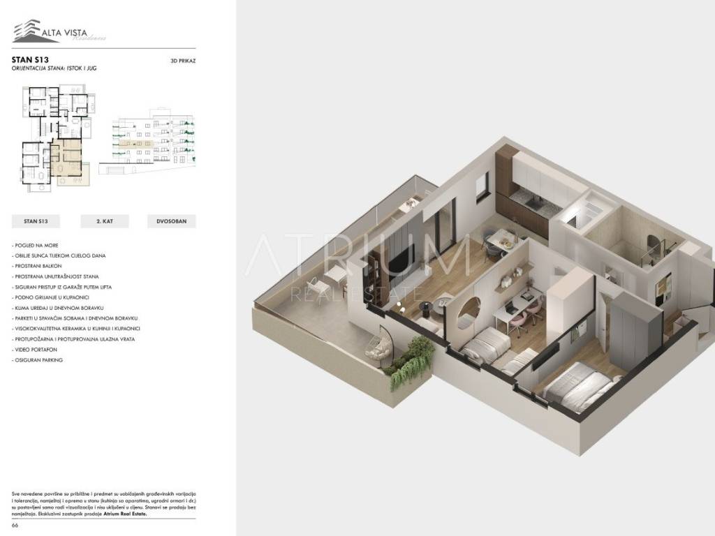 Dvosoban stan s panoramskim pogledom na more – Novogradnja Alta Vista, Seget Donji