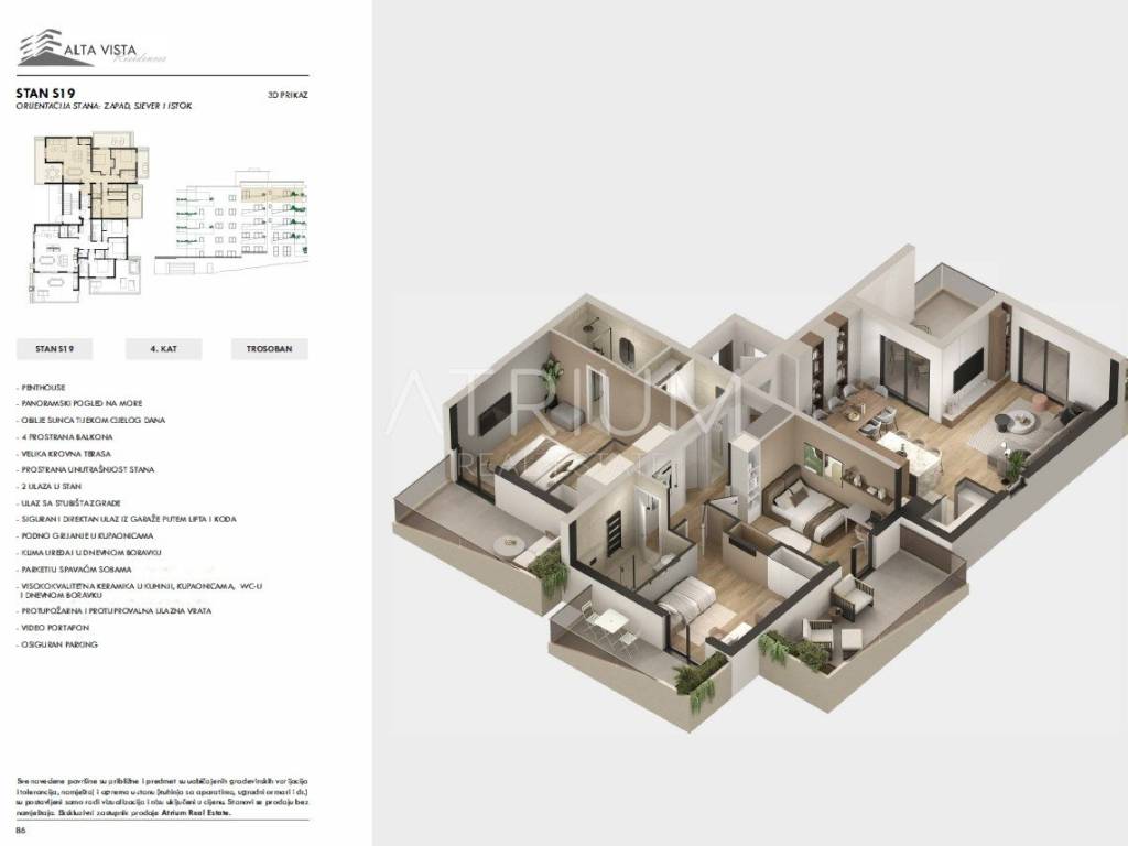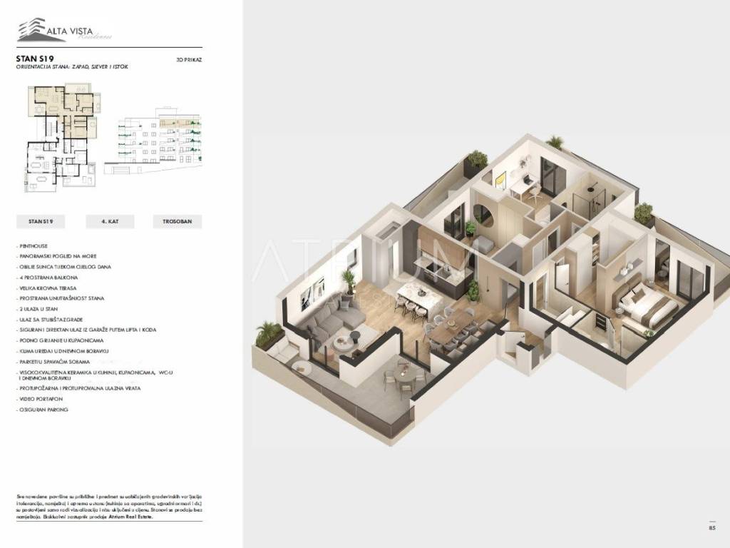 Riječ je o luksuznoj nekretnini u projektu koja nudi potpunu privatnost, direktan lift iz garaže ravno u stan i gotovo 100 m² privatne krovne terase.