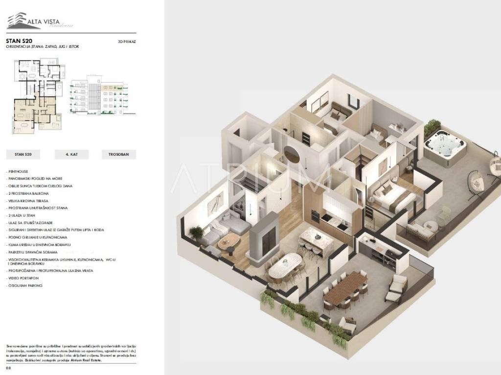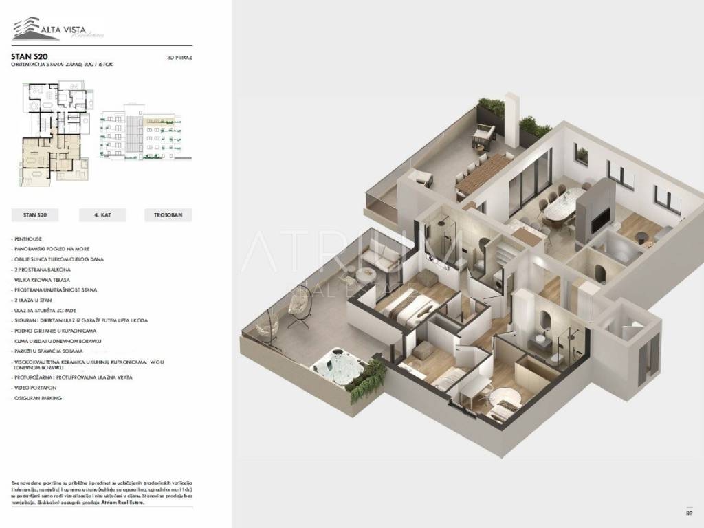Ukupna površina 317,34 m² | privatna krovna terasa 112,72 m² | direktan lift u stan | 400 m od plaže