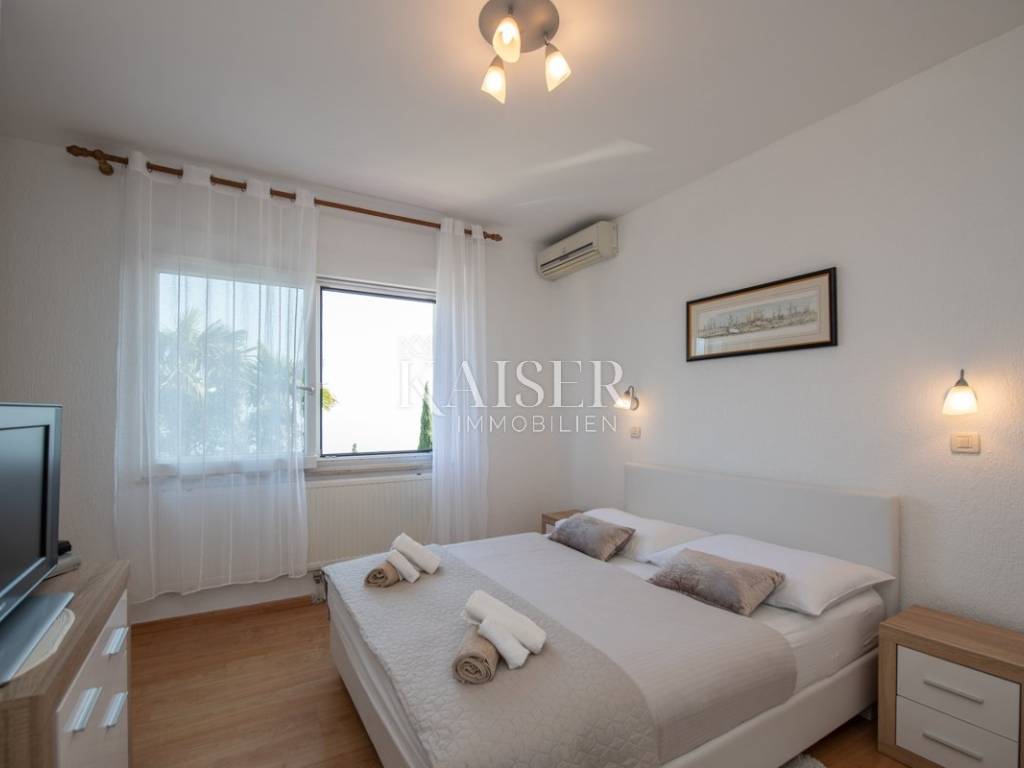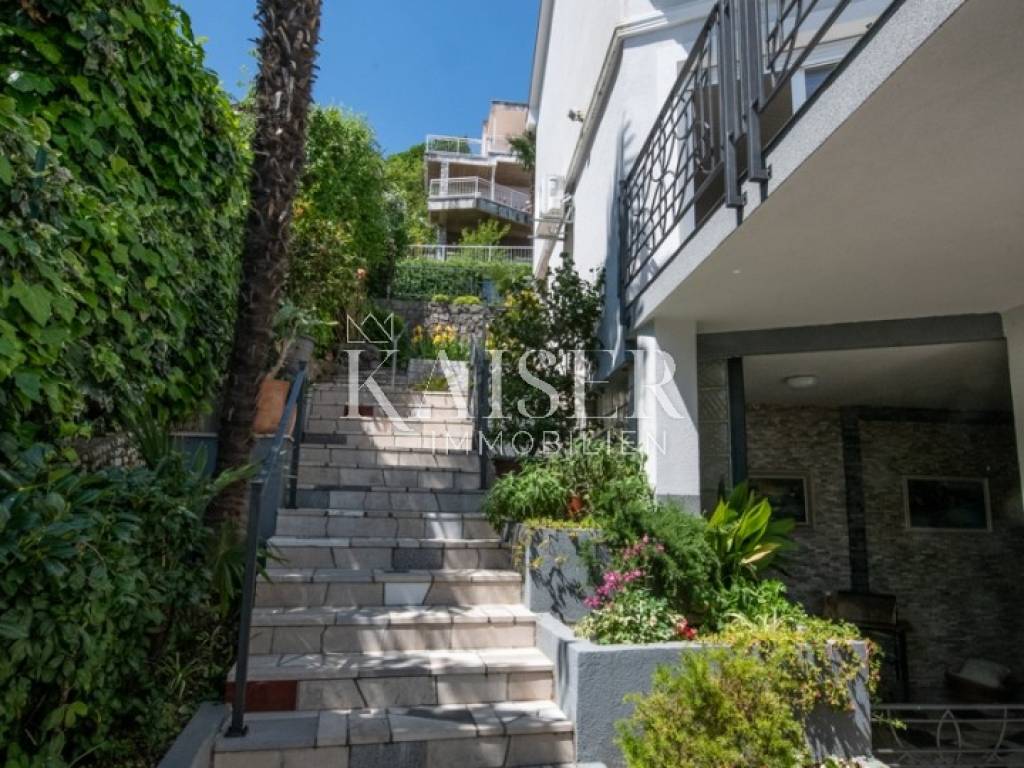Kaiser Immobilien izdvaja iz svoje ponude prekrasan trosobni stan na prvom katu, u blizini mora u Opatiji. Etaža se sastoji od predprostora, dva hodnika, tri spavaće sobe sa vlastitim kupaonicama, kuhinje, garderobe, radne sobe i dvije loggie, ukupne površine 118.40 m2. Stanu pripadaju i dva spremišta u suterenu, okućnica od 140 m2, te parkirno mjesto. Dnevni boravak ima izlaz na balkon, s kojeg se prostire prekrasan pogled na Kvarner. Kuhinja također ima izlaz na terasu sa otvorenim dvorištem za sunčanje. Etaža je luxuzno opremljena, klimatizirana, i obzirom na lokaciju, predstavlja rijetkost na tržištu. Kontaktirajte slobodno svog agenta.