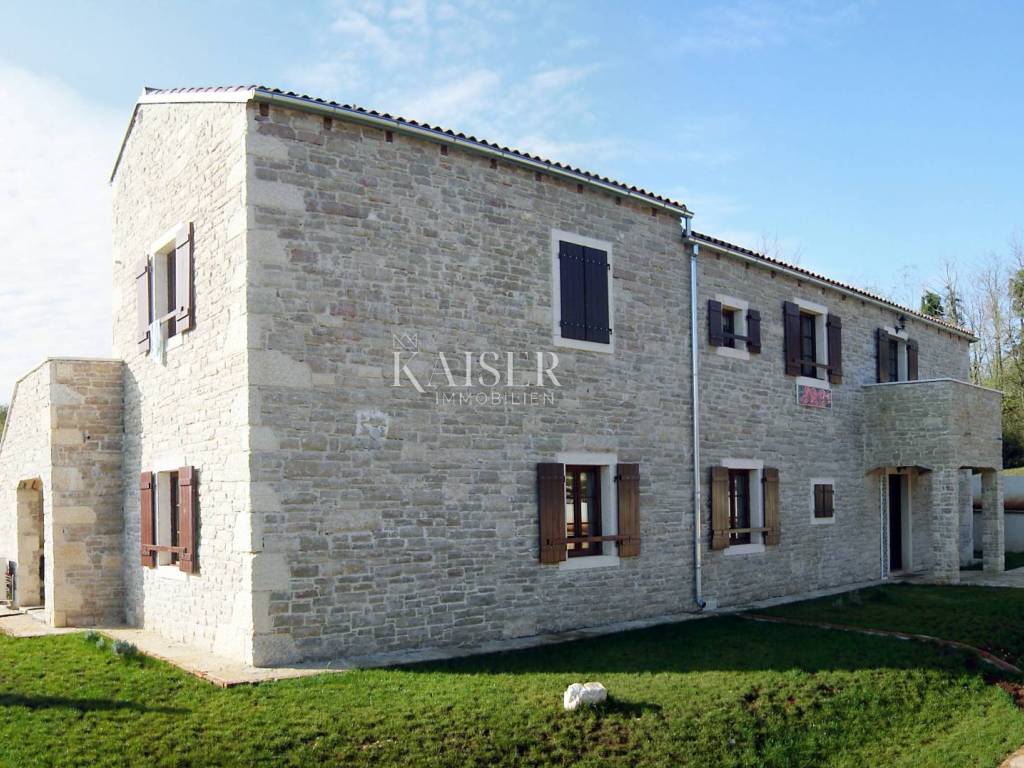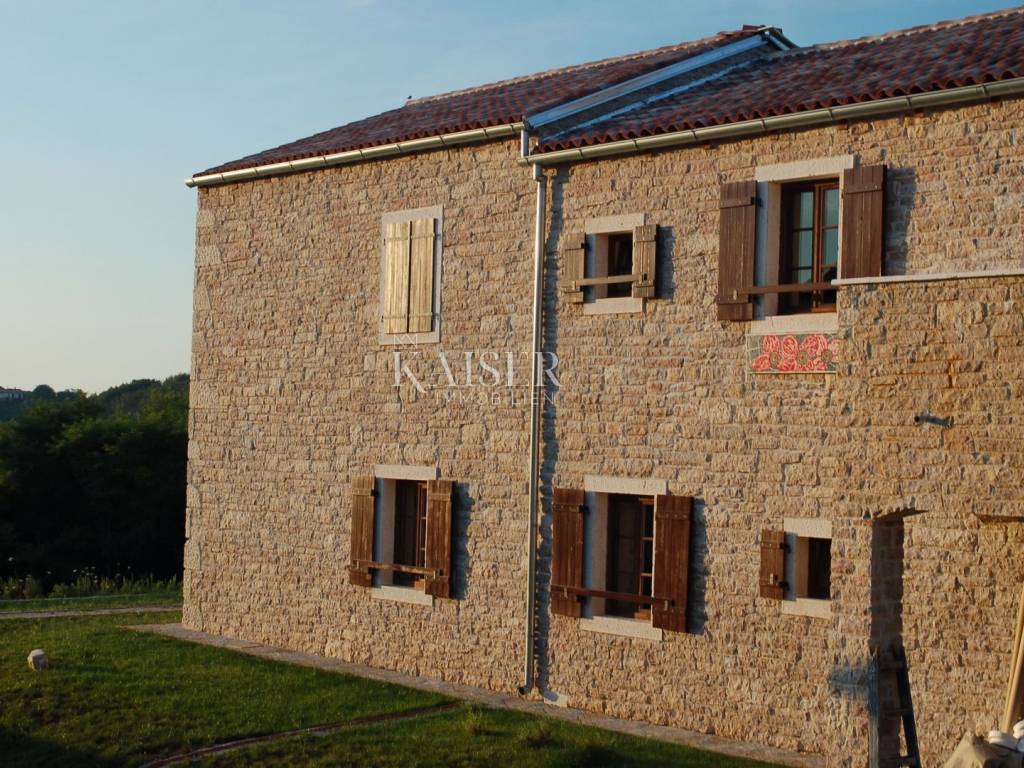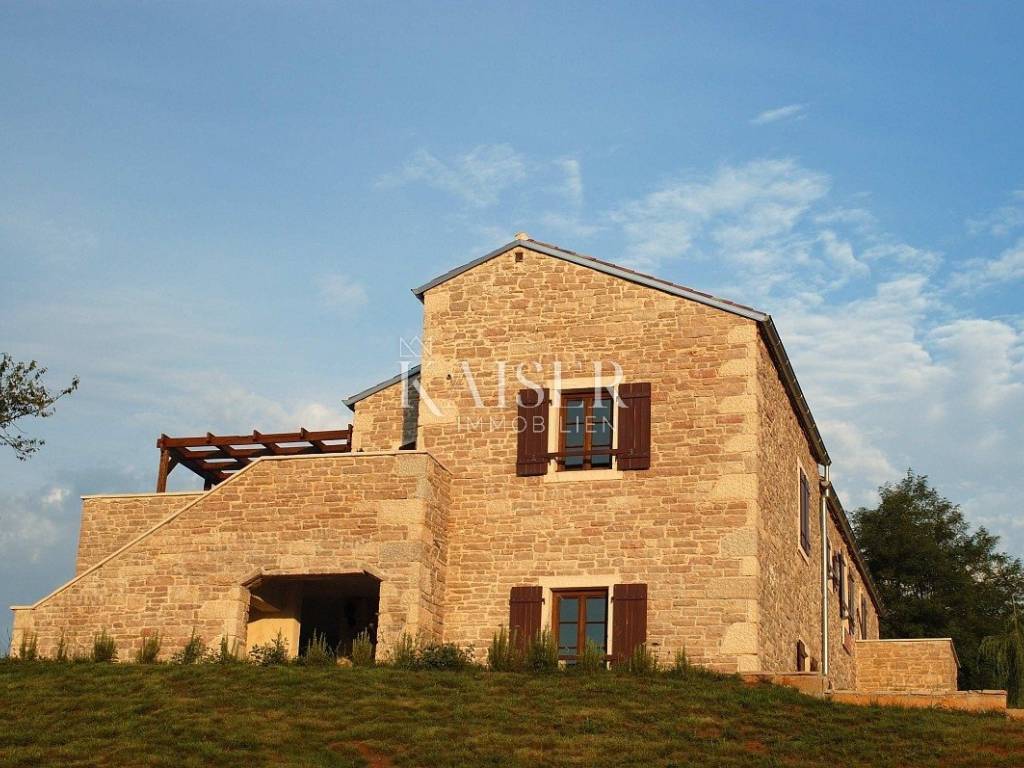 Ova prekrasna kuća za odmor autohtonog dizajna je katnica, ukupne površine 294 m2. Smještena je na prostranoj parceli veličine 1000 m2. Kuća je građena kvalitetnim materijalima i opremljena u tradicionalnom stilu. Prevladavaju prirodni materijali poput kamena i drveta čiji su detalji velikim dijelom kuće. Na katu se nalaze ukupno četiri spavaće sobe od kojih je jedna master soba sa en-suite kupaonicom i izlazom na balkon s kojeg se pruža prekrasan pogled na okolnu prirodu, dok ostale spavaće sobe dijele jednu zajedničku kupaonicu. Prizemlje obuhvaća komforan dnevni boravak, potpuno opremljenu kuhinju i blagovaonicu sa izlazom na natkrivenu terasu koja nadgleda bazen i uređenu okućnicu. Tu se nalazi i wellness zona sa saunom i mini teretanom. Pitanje grijanja i hlađenja riješeno je postavljenim klima uređajima u svim prostorijama, klasičnim istarskim kaminom u dnevnom prostoru te električno podno grijanje u svim kupaonicama. Kuća ima i postavljene solarne panele za proizvodnju vlastite električne energije.