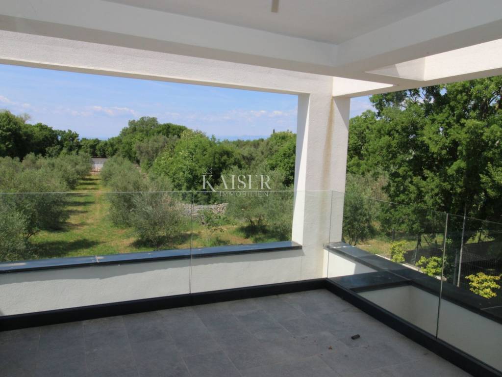 Na otoku Krku, blizu Malinske nudimo u novogradnji dvoetažni stan s bazenom i vrtom.