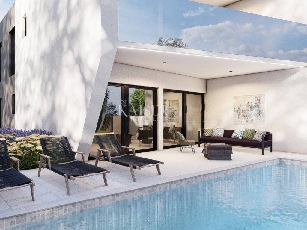 Kaiser Immobilien vam predstavlja dvojnu kuću u rohbau izvedbi. Kuća se sastoji od prizemlja i jedne gornje etaže s ukupno 140 m². U prizemlju se nalazi kupaonica te otvoreni dnevni boravak, kuhinja, blagovaonica i jedna spavaća soba. Prizemlje ima izlaz na terasu koja je spojena s bazenom, pružajući idealno mjesto za opuštanje i uživanje.