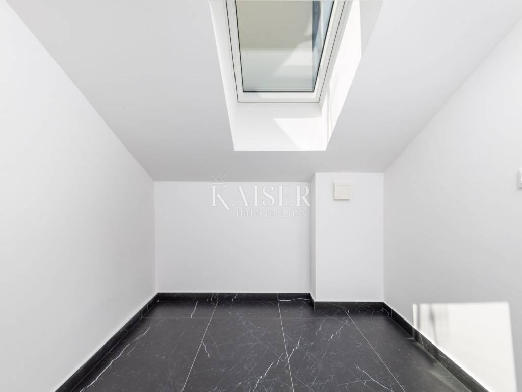 Penthouse na zadnjoj trećoj etaži se prostire na površini od 261,01 m2 a nudi nam: dnevni boravak s kuhinjom i blagovaonom, tri sobe, tri kupaonice, garderobu, vešeraj, dva hodnika, Wc-a, terasu, vanjski jacuzzi, četiri balkona, parkirnog mjesta 12,68 m2, parkirnog mjesta 12,29 m2, parkirnog mjesta 13,13 m2, spremišta 2,16 m2, spremišta 3,60 m2. Grijanje i hlađenje prostora na fenkojlere, najmoderniji su sustavi grijanja i hlađenja koji pružaju potpunu ugodnost, a u kupaonama je i podno grijanje. Na ovu etažu dolazimo liftom direktno u prostor, a naravno postoji i varijanta stubištem. Pred nama se otvara centralni dio predviđen za dnevni boravak, kuhinju i blagovaonu s izlazom na veliku natkrivenu terasu na kojoj nas čeka jacuzzi, i pogled na more. S lijeve i desne strane centralnog dijela nalaze se spavaće sobe s kupaonicama i svaka ima izlaz na balkon i terasu. Odlika ovog prostora su velike staklene površine koje nas vizualno i faktično povezuju s okolnim prostorom dajući nam osjećaj prostranosti, kao i materijali korišteni na podu i kupaonama. Ulaz u garažu i garaža kao i okoliš zgrade pokriven je video nadzorom. S bočne strane zgrade nalazi se vanjski bazen. Okoliš zgrade uređen je mediteranskim zelenilom i biljem.