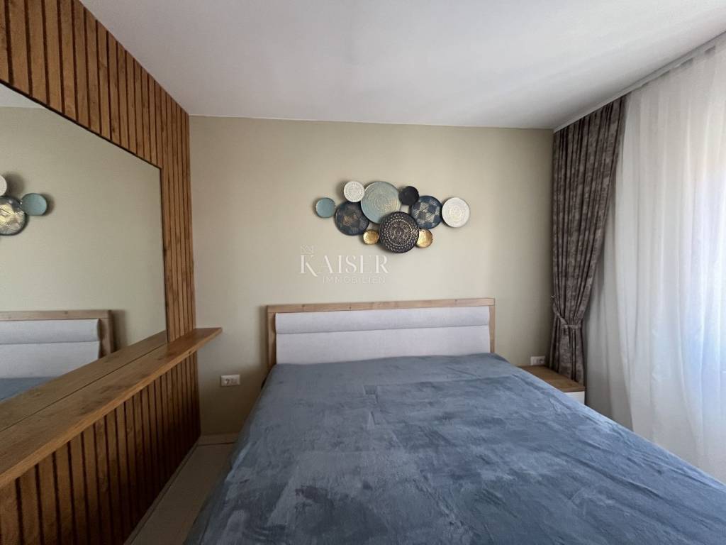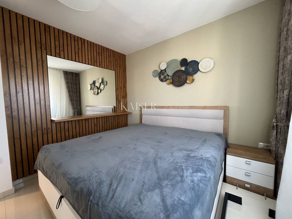 Stan je prozračan, svijetao i sunčan, s modernim uređenjem i podnim grijanjem u cijelom prostoru. Nalazi se u blizini predivnih plaža i mora, a smješten je u novijoj, urednoj zgradi koja uključuje i jedno parkirno mjesto.