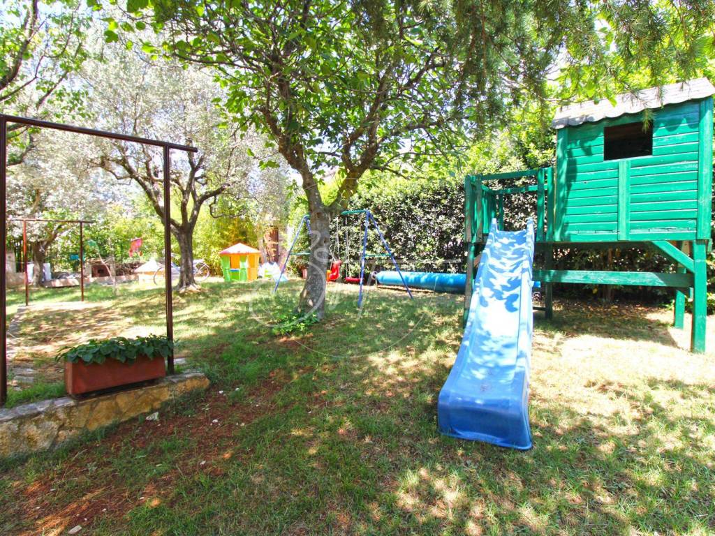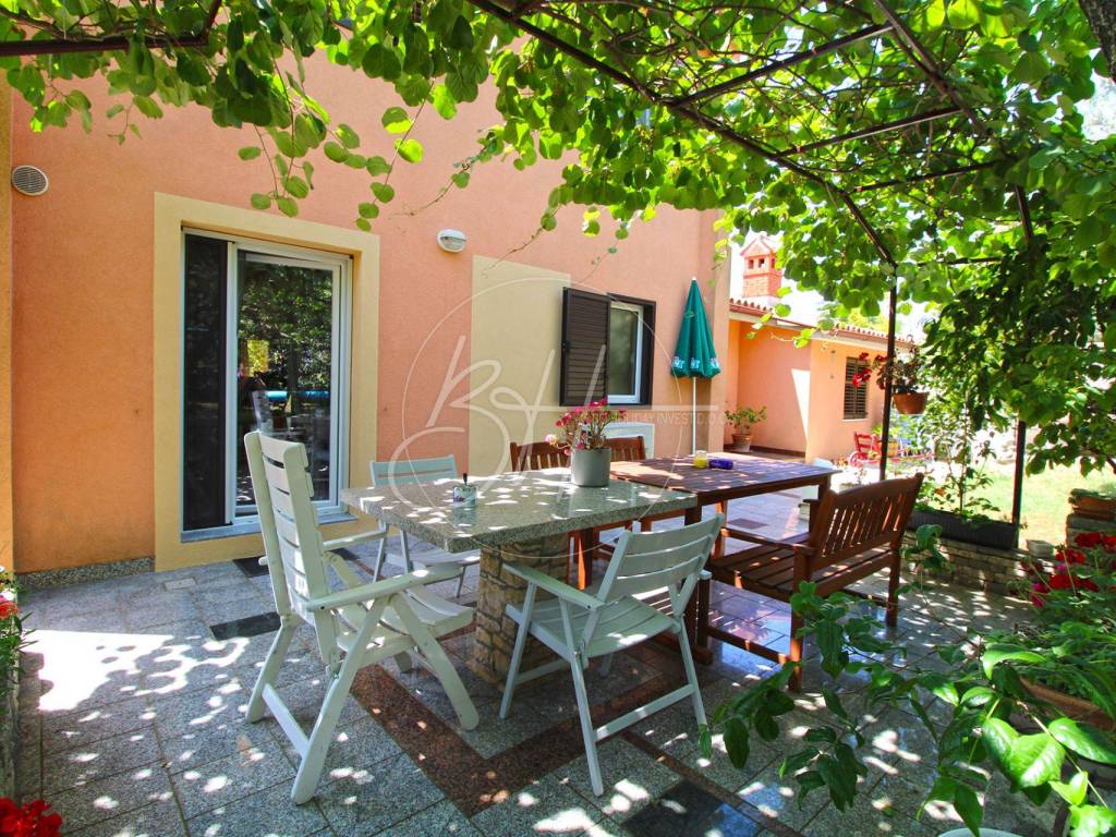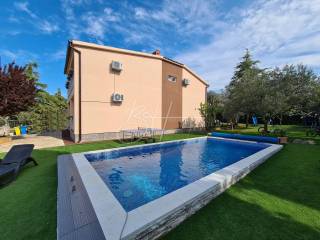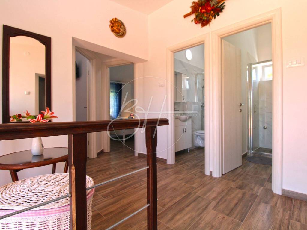 Ova prekrasna kuća s bazenom i vrhunskim pogledom na more se nalazi u Fažani na samo 500 m udaljenosti od mora. Sastoji se o hodnika, kuhinje i blagovaonice, dnevnog boravka s balkonom i izlazom na vrat te kupaonice. Na gornjem katu se nalaze 4 spavaće sobe i 2 kupaonice. Garaža u sklopu kuće je površine oko 15 m2 s atomskim skloništem dimenzije 3x3x3 sa zračnim ispuhom.
