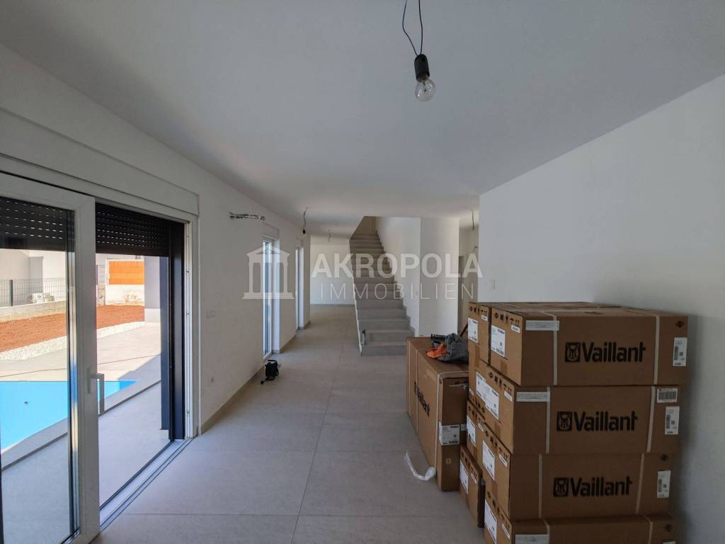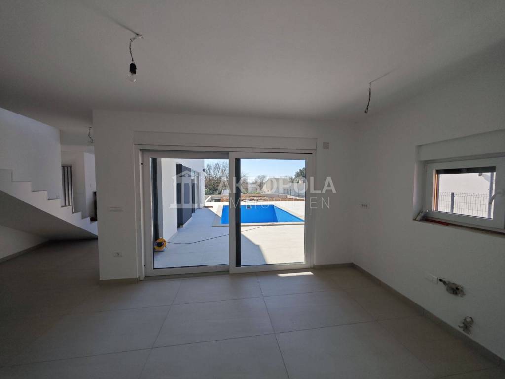 Istra/ Ližnjan, u prodaji vila s bazenom. Stambena površina 185 m2 prizemlje i kat. U prizemlju se nalazi: dnevni boravak, kuhinja s blagovaonom, 2 terase, Kupaona, unutarnje stepenice vode na kat gdje su smještene 3 spavaće sobe, terasa i kupaona. Bzen i zelena površina ispred dnevnog boravka i kuhinje, 2 parkirna mjesta. U svim prostorijama je klima uređaj. Udaljenost od mora i plaže u Ližnjanu 1500 m. Udaljenost od Medulina 800 m, do plaža u Medulinu 1500 m. Kuća će za 2 mjeseca biti ključ u ruke. Vlasništvo je firma.