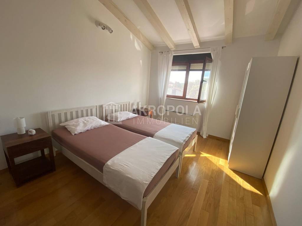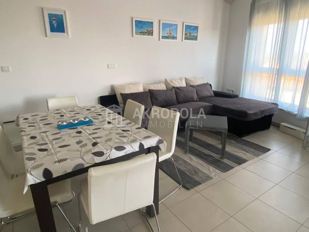 Istra Ližnjan, komforan dvosoban stan na prvom katu stambene zgrade. Stan ima 2 spavaće sobe, 2 kupaonice, dnevni boravak s kuhinjom i blagovaonicom, 2 terase i parkirno mjesto. Prodaje se sa namještajem. Svi sadržaji u centru mjesta su udaljeni 250 m, plaža je udaljena 900 m. Medulin je udaljen 2 km.