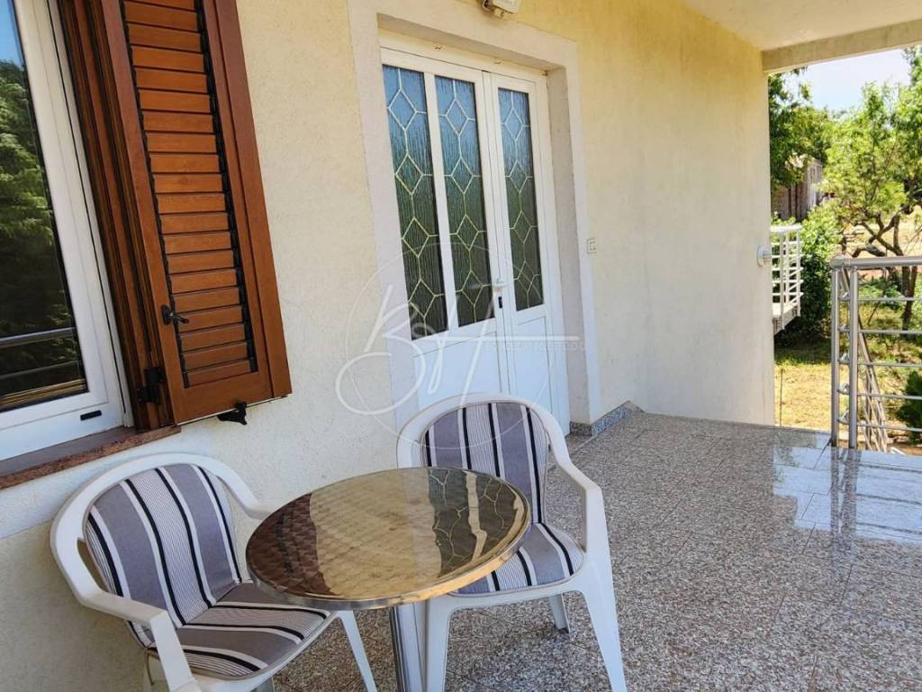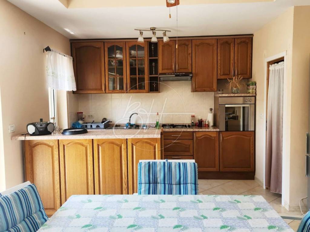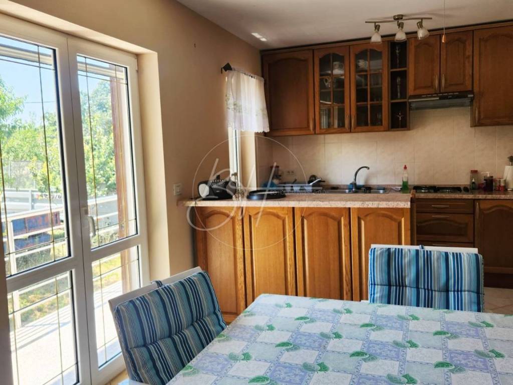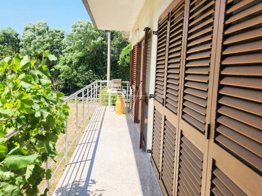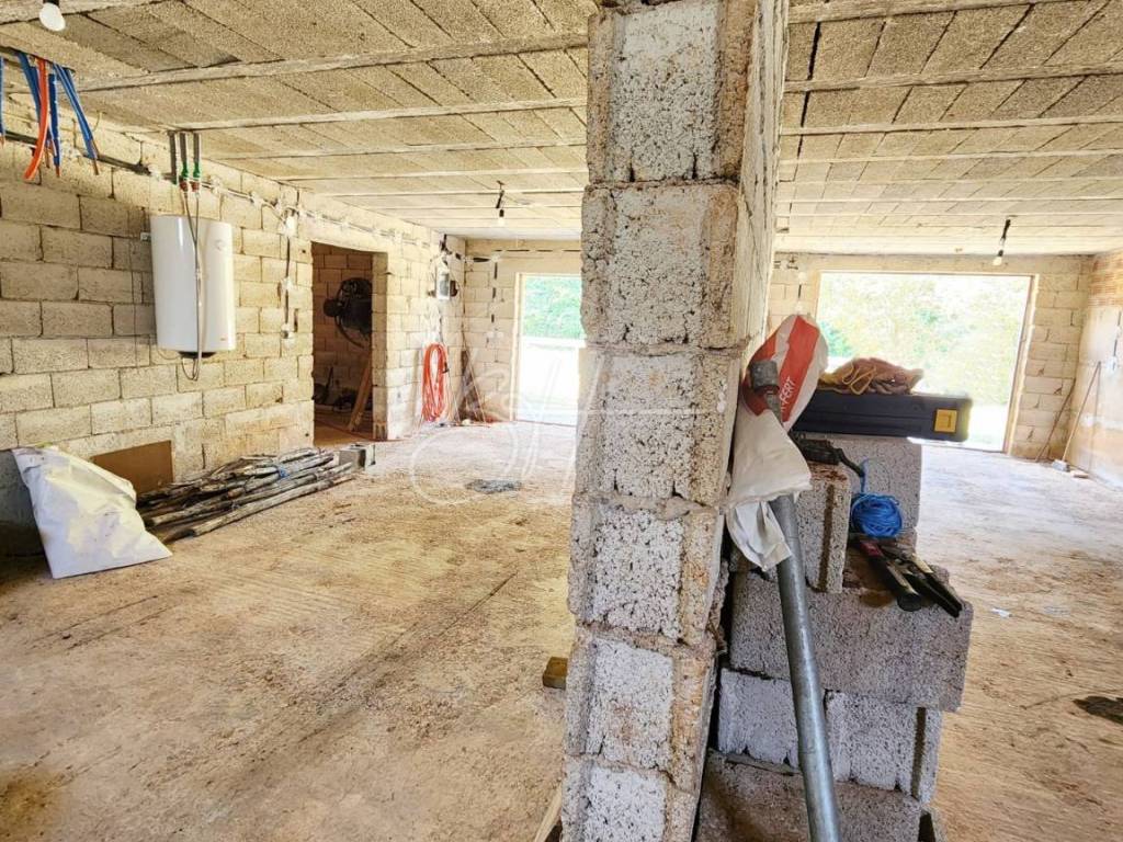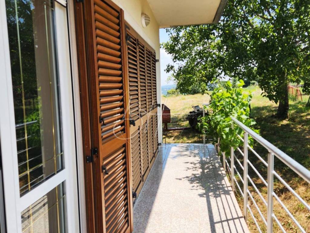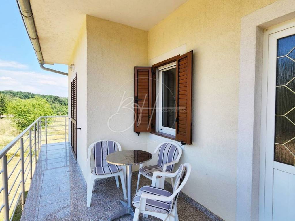 Unutrašnjost kuće sastoji se od hodnika, kuhinje s blagovaonicom i dnevnim boravkom otvorenog tipa, tri udobne spavaće sobe, moderno uređene kupaonice, praktične praonice te dva balkona koji pružaju pogled na tišinu i zelenilo koje okružuje nekretninu.