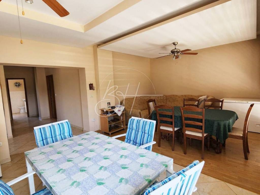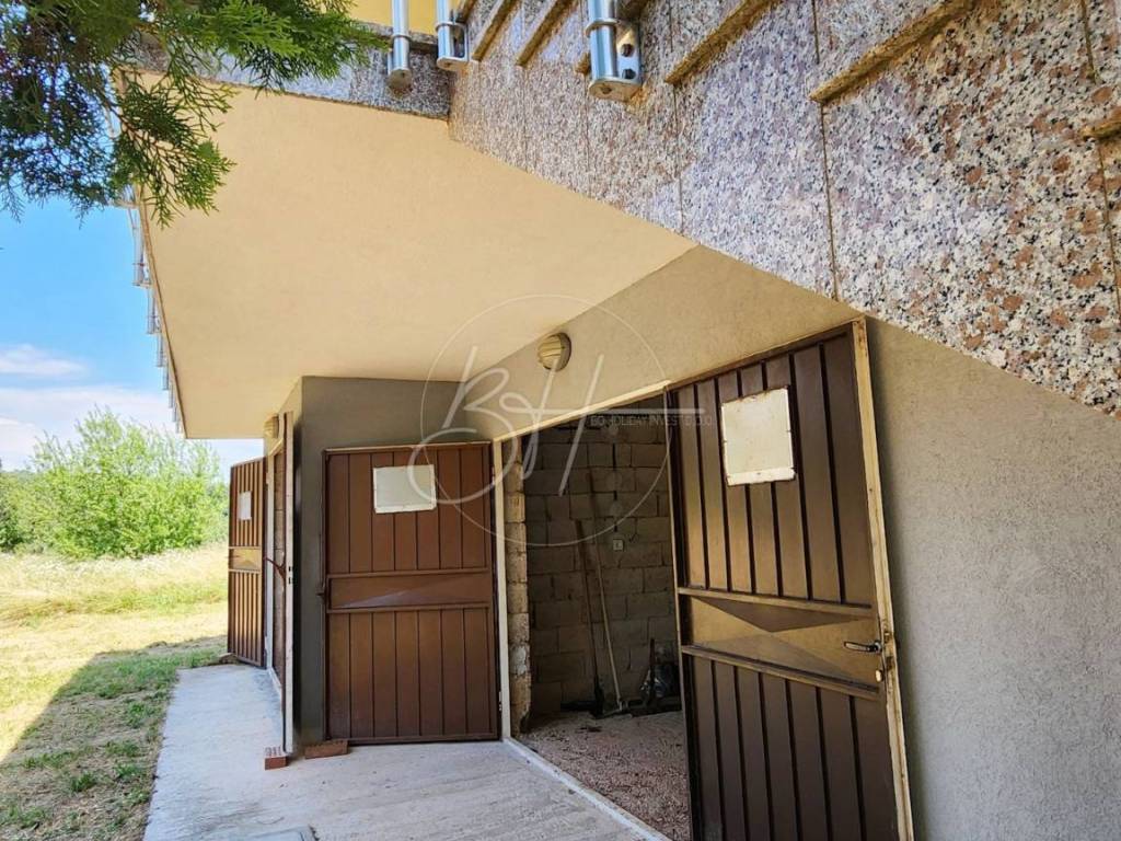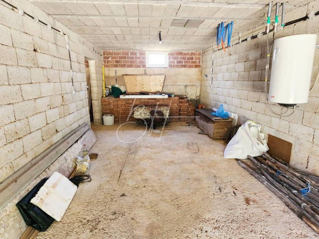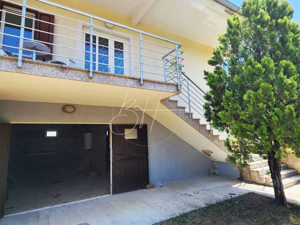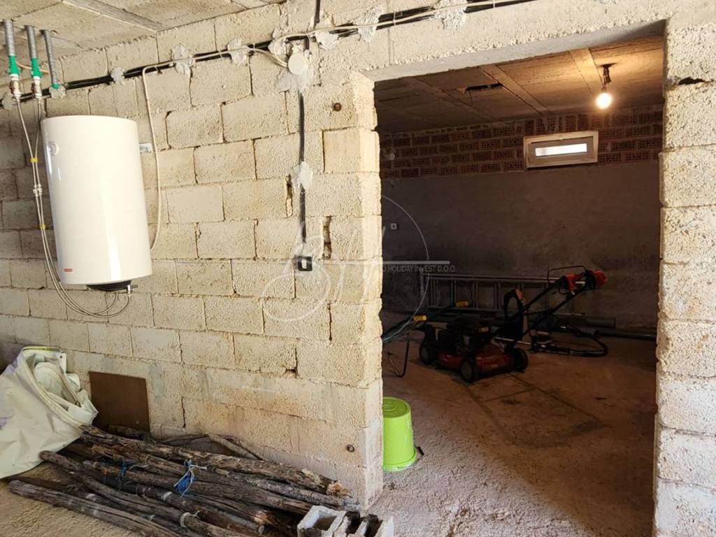 U prizemlju se nalaze dvije garaže s kapacitetom za četiri vozila, kao i konoba površine otprilike 130 m² koja nudi razne mogućnosti – od prostora za druženja do spremišta ili dodatne stambene jedinice. Postavljena je i priprema za podno grijanje, što budućim vlasnicima olakšava daljnju prilagodbu prostora.