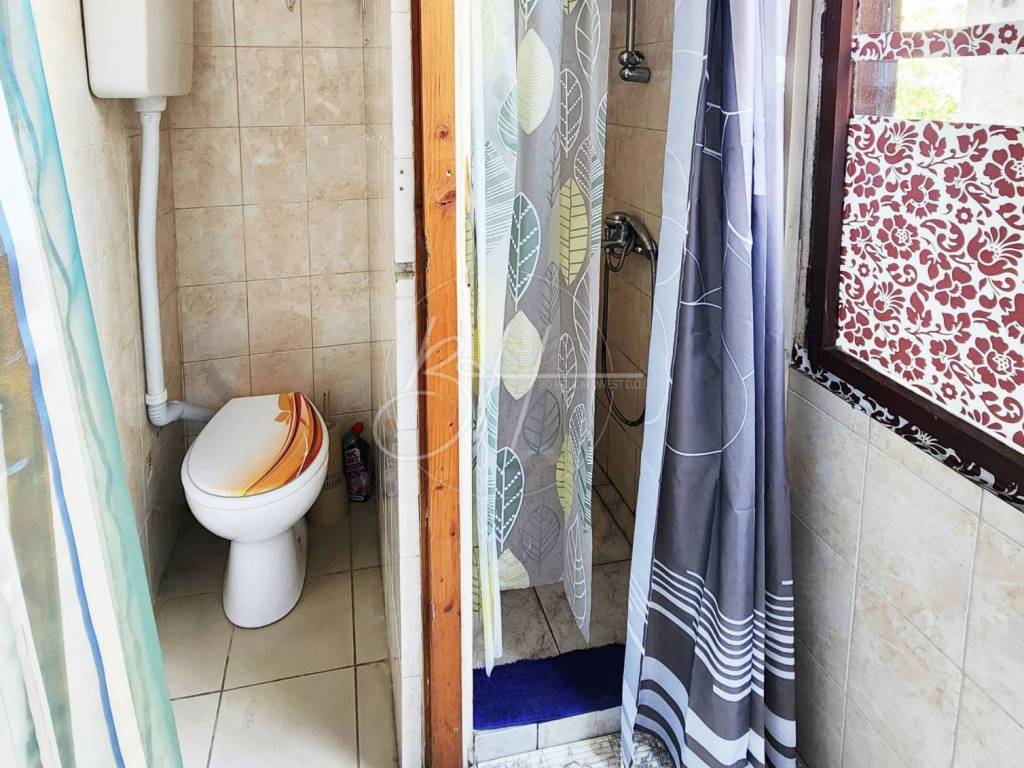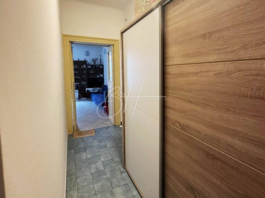 Stan u prizemlju površine cca 45 m2 sastoji se od hodnika, kuhinje s blagovaonicom i dnevnim boravkom, jedne spavaće sobe, kupaonice i ostave.