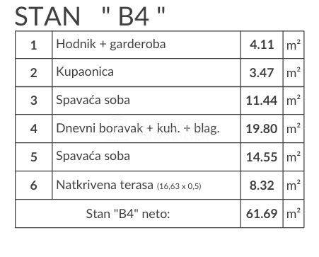 Predviđeno je ukupno 60 stanova različitih veličina i rasporeda. Posebna pažnja posvećena je fleksibilnosti prostora, kako bi se omogućila prilagodba prema željama budućih stanara. Uz stanove, kupcima su na raspolaganju parkirna mjesta, spremišta i zajedničke zelene površine koje doprinose osjećaju zajedništva i udobnosti.