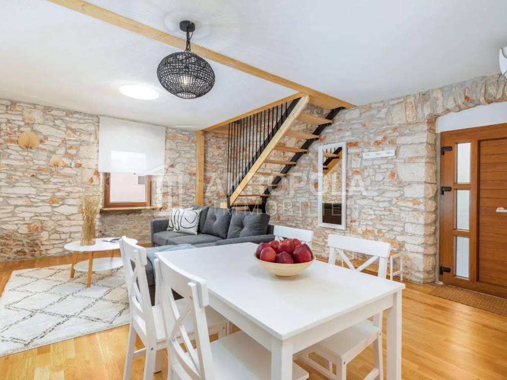 Kamena kuća na prodaju. - sastoji se od 3 odvojena apartmana, 1 dvosobni i 2 jednosobna. Svaki apartman ima zasebnu terasu, jedan zajednički roštilj u vrtu. U dvorištu je dodatni studio apartman.