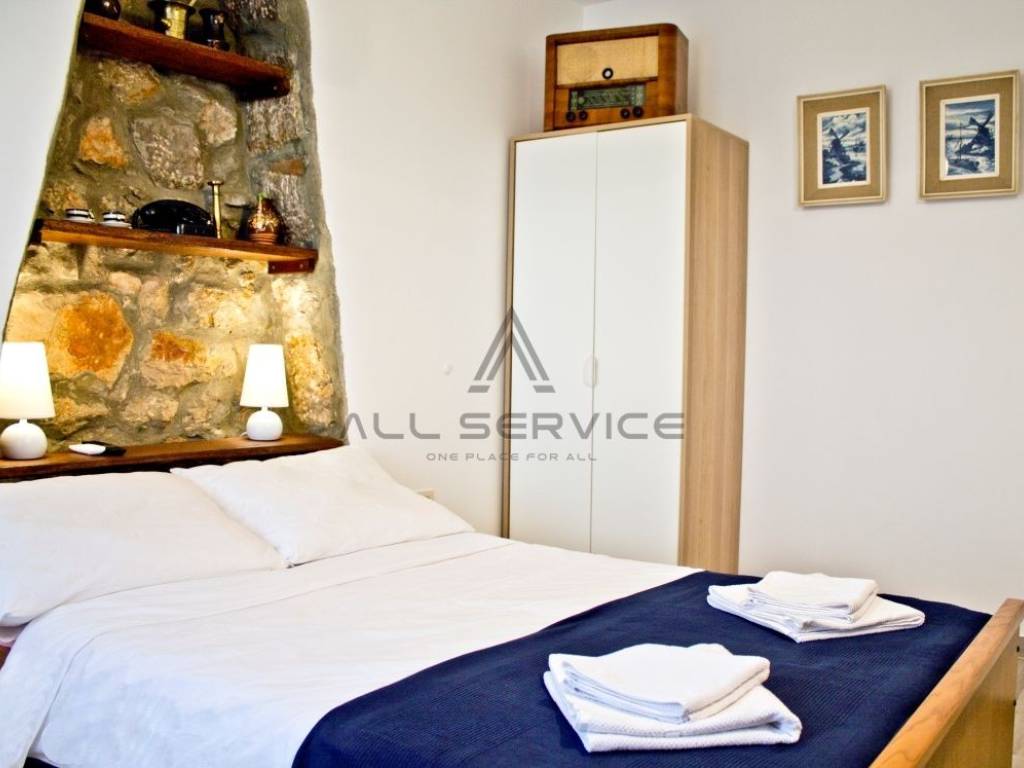 Prodaje se obnovljena tradicionalna kamena kuća s predivnim dvorištem i terasom, u starom dijelu Dramlja, 500 metara od mora.
