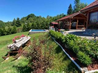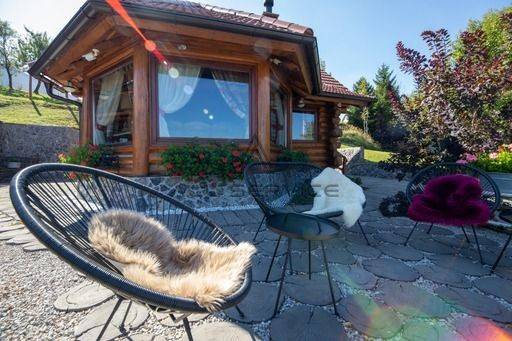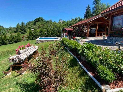 Dobili smo u ponudu predivnu pricu, kucu od drvenih trupaca koja se sastoji od natkrivene terase s rostiljem, grijanim bazenom 7x4 i wellness objektom na 3000m2 sredjene okucnice.