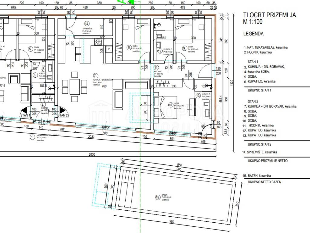 **VILE 1 i 2:** Ove identične vile, svaka sa 176,15 m² netto površine (dvije stambene