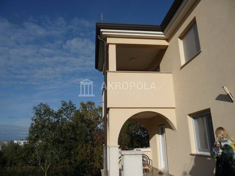 Prodaja apartmanske kuće u Poreču, 400 m2 izgrađena na parceli od 1000 m2 Kuća ima podrum , perizemlje i kat. U suterenu su smještena 2 manja apartmana, kotlovnica, vešeraj i konoba. Prizemlje stan od 120 m2 sastoji se od dnevnog boravka, kuhije sa blagovaonom, 2 sobe sa garderobama i kupaonama. 1.Kat se sastoji od 2 apartmana . Garaža 30 m2. Pogled na more. Kuća ima centralno grijanje na plin, klima uređaje.
