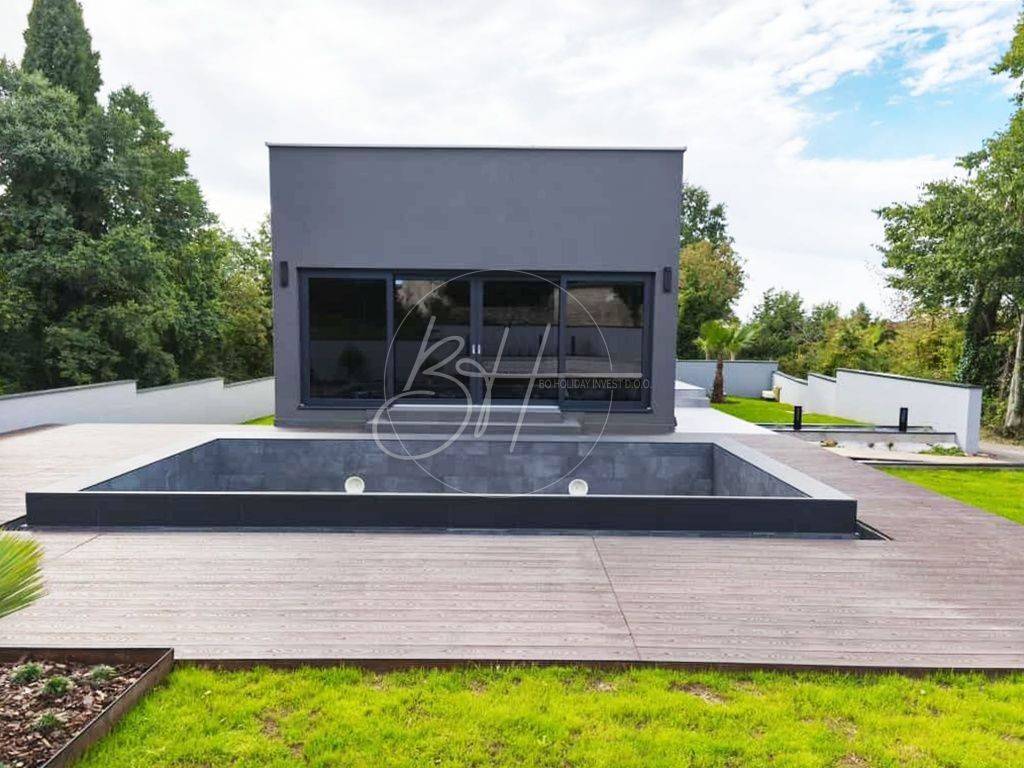 Iz dnevnog boravka izlazi se na lijepu terasu u kojoj se nalazi bazen površine 7x3.5 metara. Bazen je grijani što omogućuje korištenje u hladnim zimskim danima, a time i mogućnost produljenja turističke sezone za one koji se planiraju baviti turističkim iznajmljivanjem.