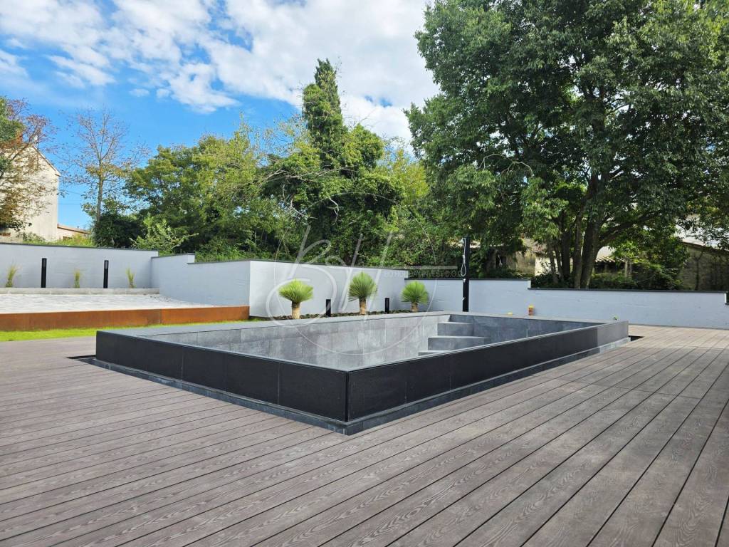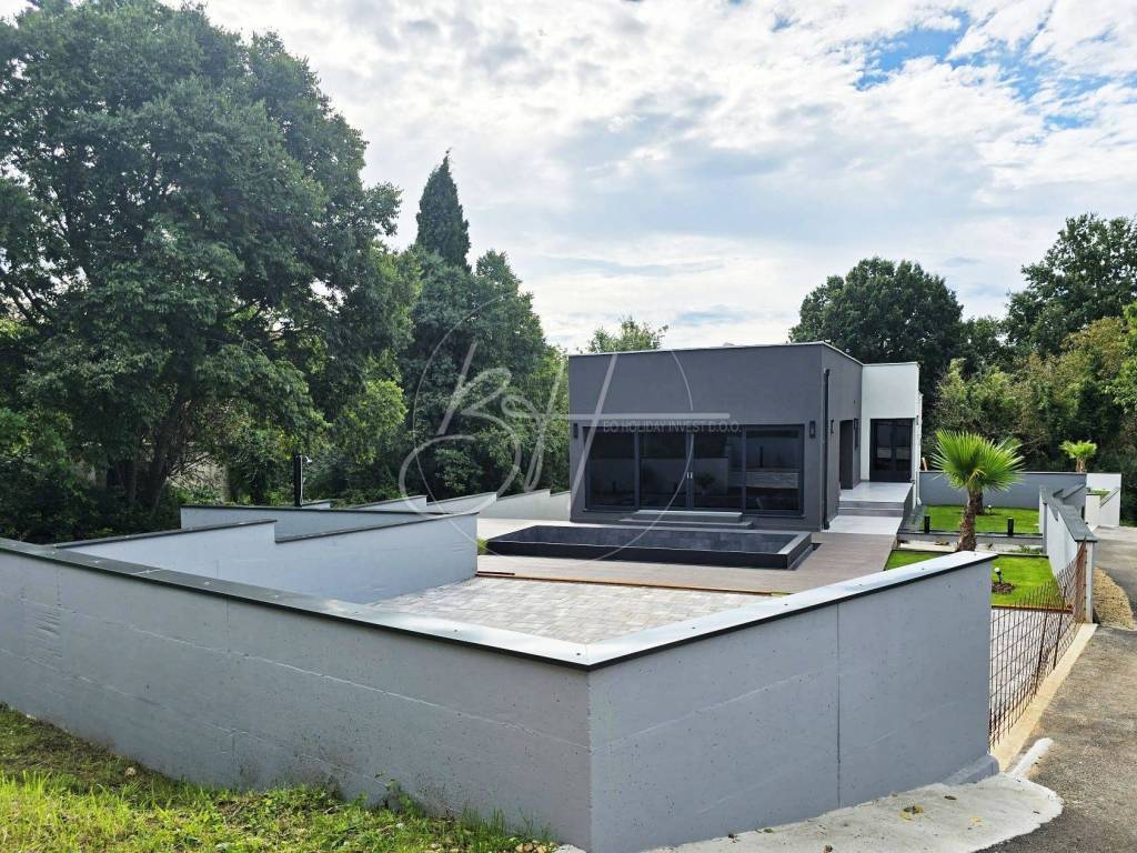 Okućnica je ograđena, a nekretnina je posljednja u građevinskoj zoni čime je dobivena maksimalna količina privatnosti. Vrt je skriven od pogleda, a nudi sve što je potrebno za potpunu zabavu na otvorenom.